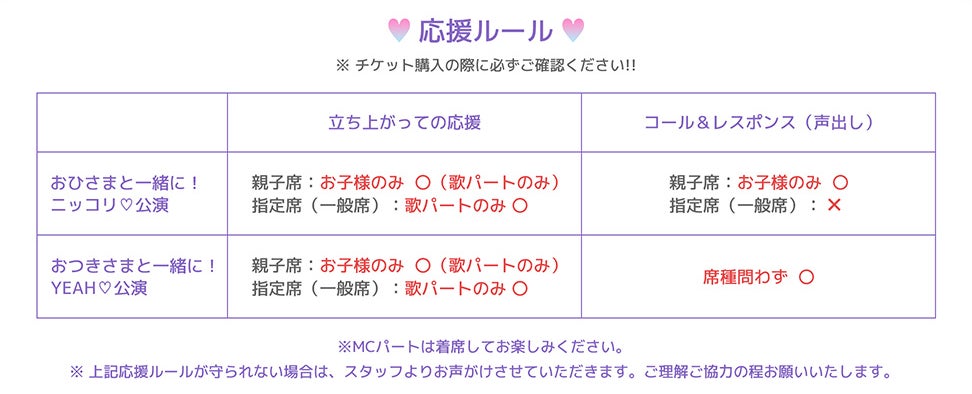 ※おつきさまと一緒に!YEAH♡公演:親子席は2階席エリアになります。