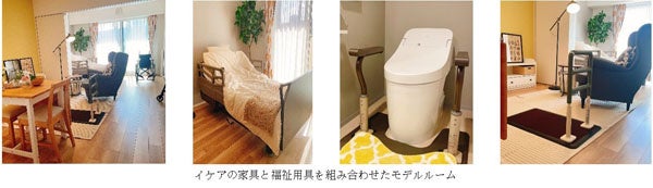 SOMPOケアが運営する介護施設のモデルルームを複数手掛ける「イケア」によるシニアの方々の指向性や利便性を考慮した家具のコーディネートに、介護保険を活用することで安価で購入やレンタルができる福祉用具を組み合わせたモデルルームをマンション内に設置。