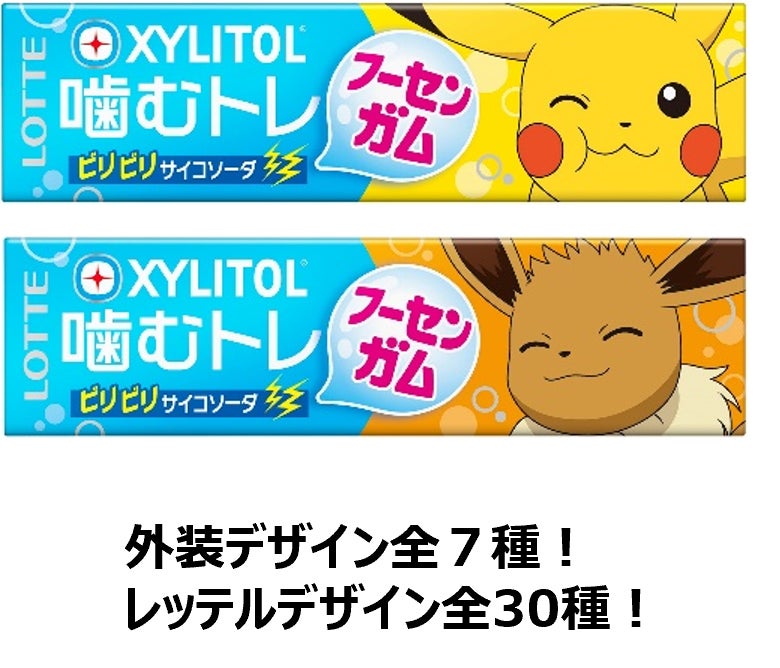 ボリューム感のある噛み応えが特徴のキシリトール配合フーセンガム。フーセンを膨らませるためにたくさん口を動かす必要があるように設計しています。本体やレッテルにはお子様から大人気のポケモンを掲載。味はポケモンに登場するサイコソーダ味のイメージに、ピカチュウの電撃を思わせるビリビリ要素を付与。おいしく楽しく噛む習慣を身に付けられる商品です。お子さまの大切な歯のために。