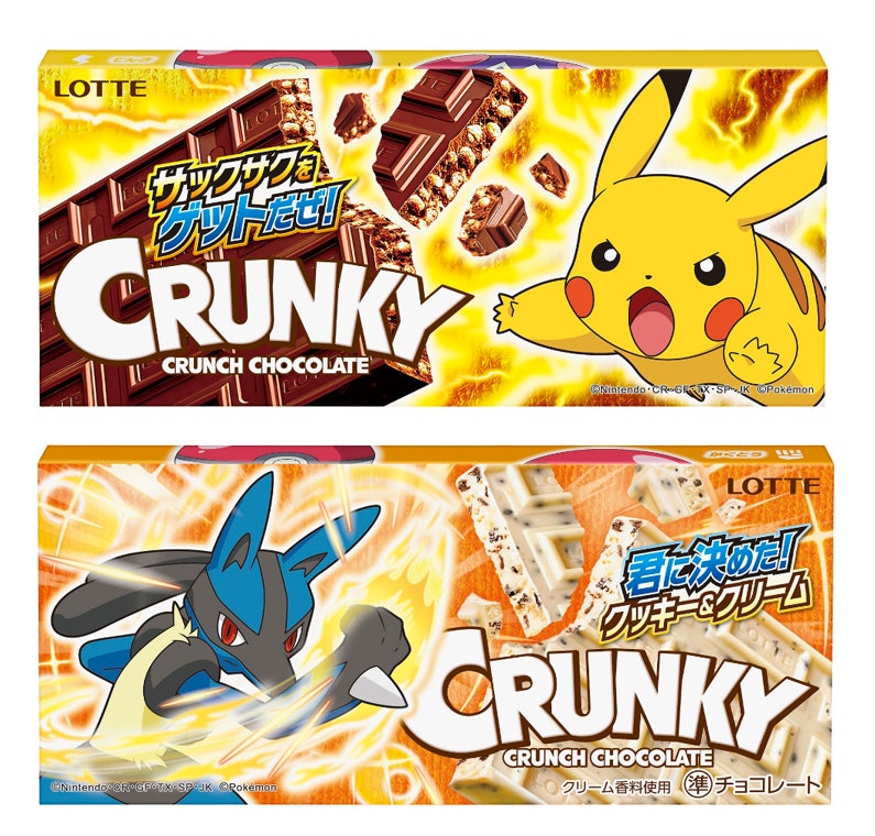 クランキーのポケモンデザインが新登場!表面には、各9種類のポケモンたちが繰り出す”わざ”でサックサク食感を表現。裏面には切り取ってコレクションできる”わざ図鑑”や、天面をつなげると、モンスターボールやマスターボールが浮かび上がり、食べた後も遊べる、二度おいしいデザインとなっています。子どもから大人まで幅広い世代の方々にお楽しみいただけますので、是非お試しください!!