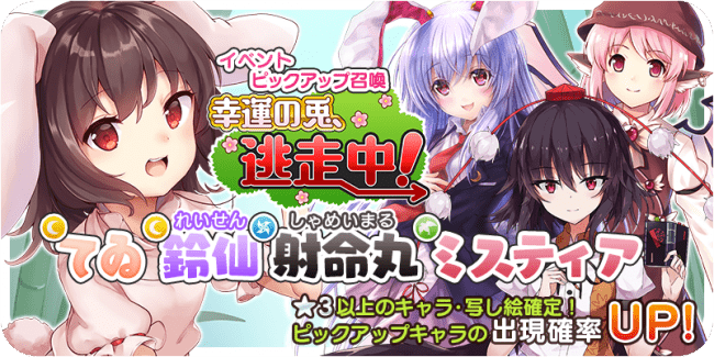 『東方キャノンボール』、11月28日(木)15:00より期間限定イベント「幸運の兎、逃走中!」と「幸運の兎、逃走中!ピックアップ召喚」を開催!