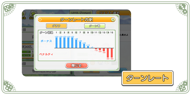 ※「ターンレート」が発生するクエストでは、「ターンレート」ボタンを押すことで詳細の確認ができます。