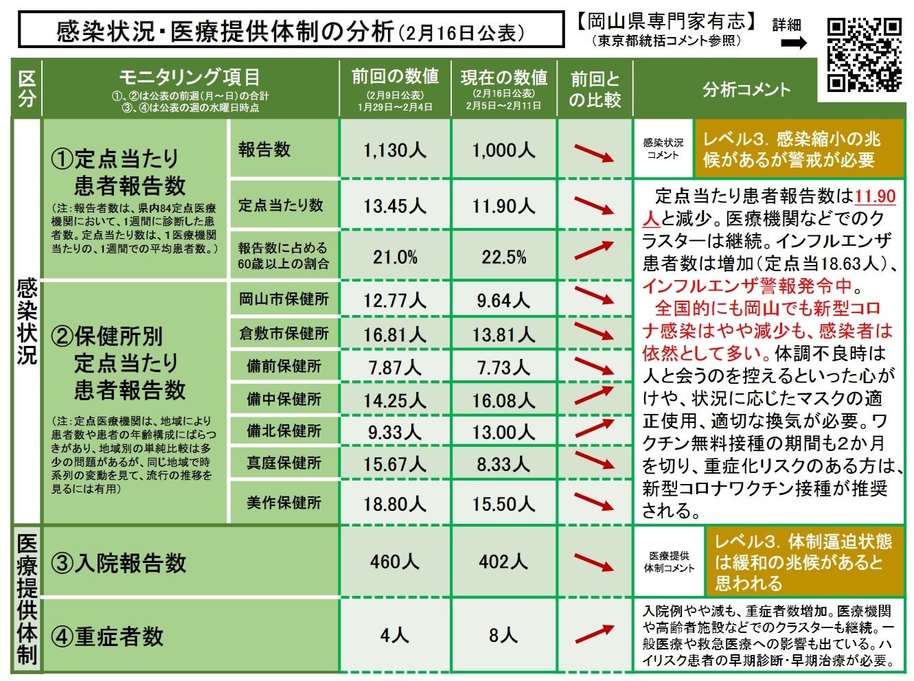 〔参考:前回 2月 9日(金)時点…レベル3.感染が拡大しつつあり警戒が必要〕