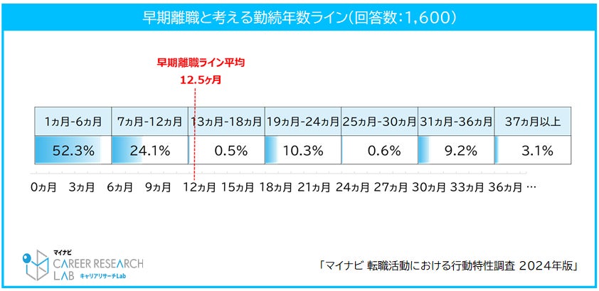 直近1年間に転職活動をした人(転職者・転職活動者)が早期離職と考える勤続年数のラインは、平均「12.5カ月」だった。【図2】