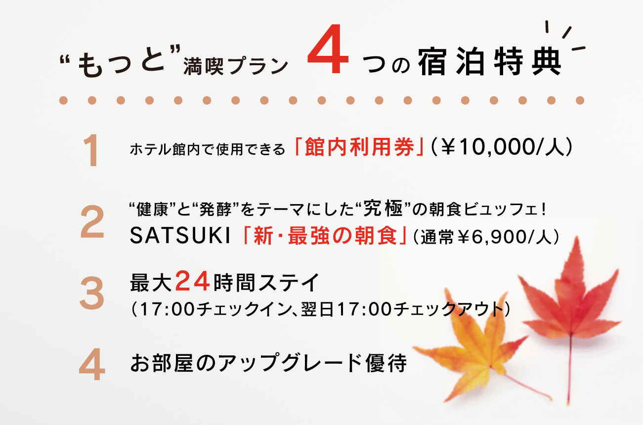 ・館内の対象レストラン、ショップで使える館内利用券(1室1泊1名さまあたり¥10,000分)付