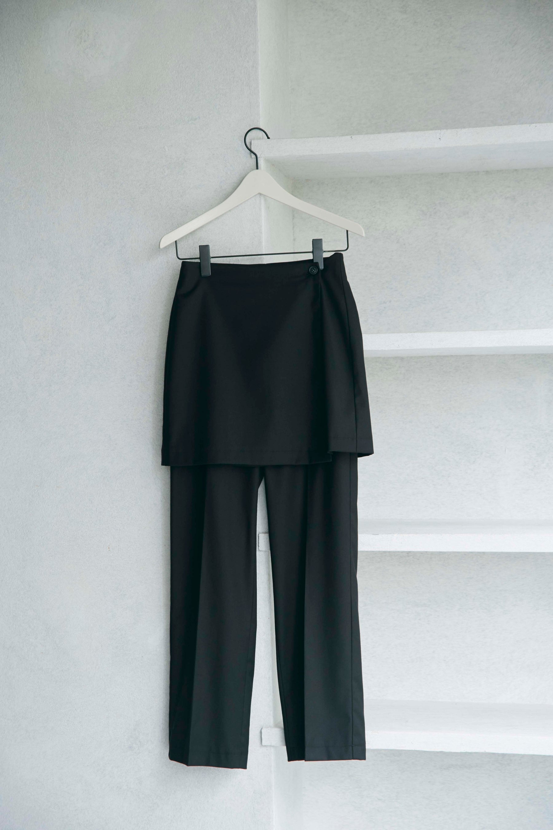 パンツとスカートがセパレートでも着用でき、レイヤードすればまさに今年顔になるスカパン。お気に入りのニットと合わせても更新感。パンツは後ろゴム仕様かつすっきり見えるストレートで、美脚と穿き心地を両立。