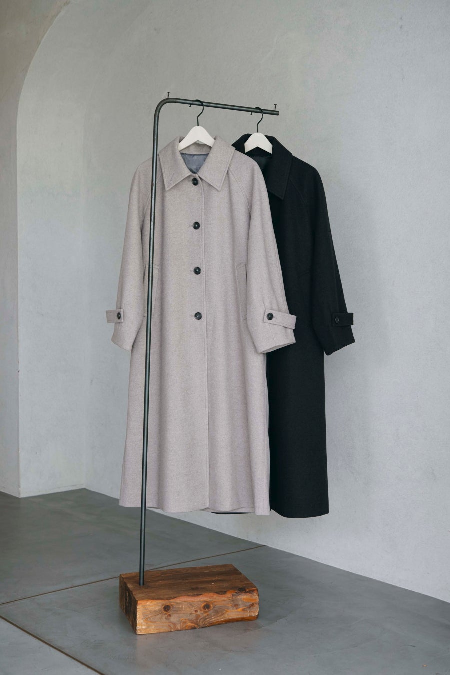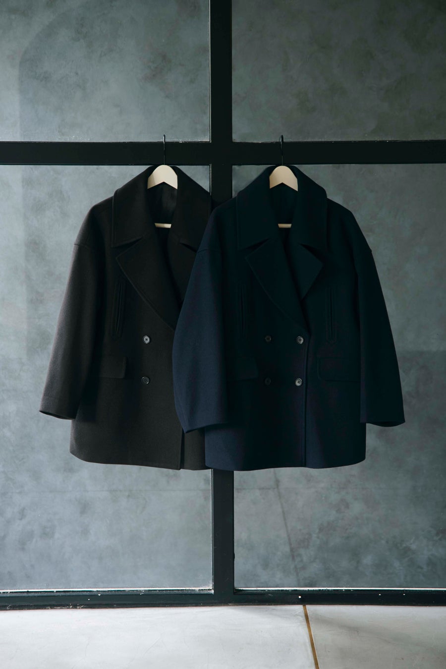 伝統的なディテールは踏襲しつつビッグシルエットでしつらえたコートは、羽織るだけで今らしいシルエットに。ウールのような風合いのサステナブル素材を使用しているので、とても軽くさらりと羽織れるところも魅力。中に着込めるゆとりもあり。