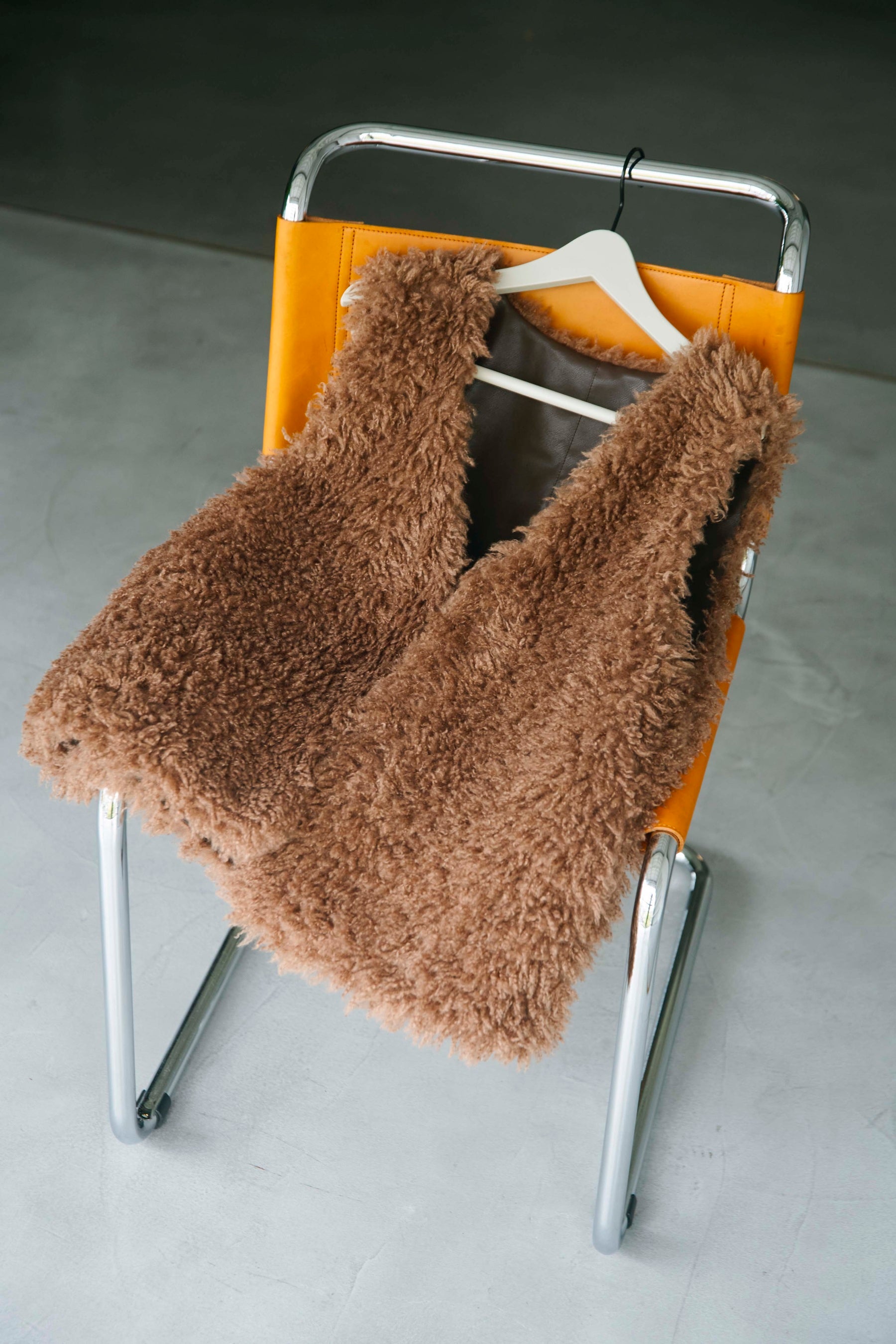 コーデのこなれ感を演出するエコファーと合皮のリバーシブルベスト。ファー側をワンピースに合わせればやや甘めに、合皮側をニットやシャツに羽織ればシックにも。両面ともに柔らかで上品、大人のためのプラスワンアイテム。