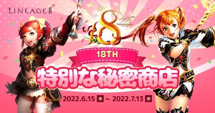 PC向けオンラインゲーム『リネージュ2』をサービス、運営しているエヌ・シー・ジャパン株式会社(東京都港区、代表取締役:金 澤憲(キム テクホン))は、本日2022年6月15日(水)にライブサービス/クラシックサービス/アデンサービスでの各種18周年記念イベントやキャンペーンの開催をお知らせします。