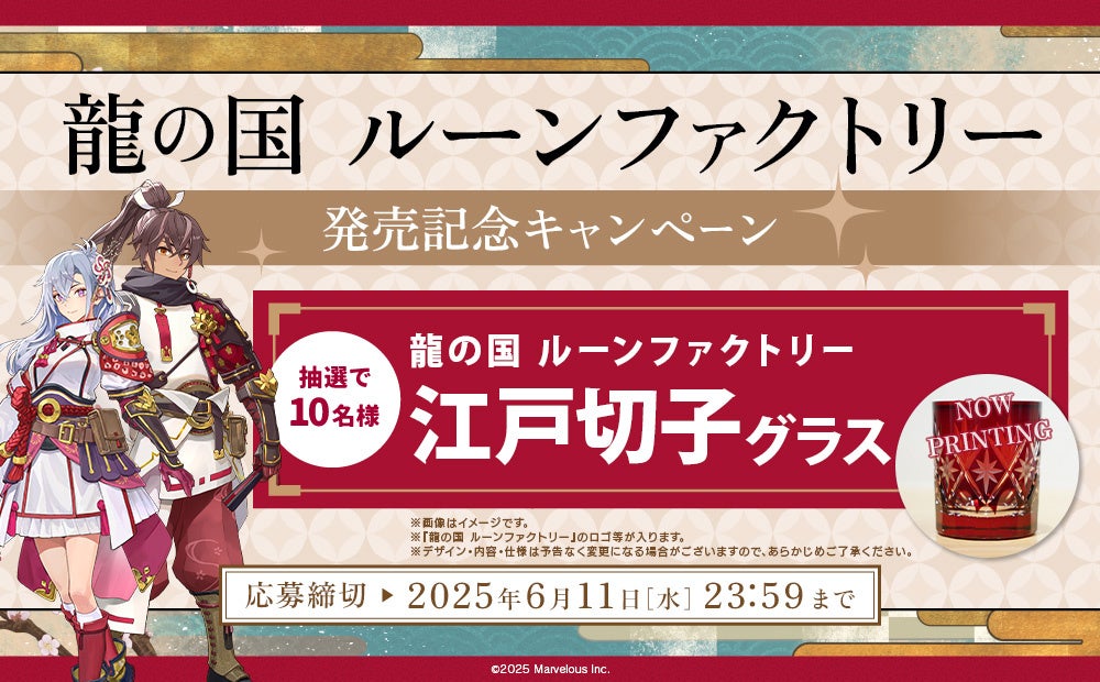 抽選で10名様に「『龍の国 ルーンファクトリー』江戸切子グラス」があたる