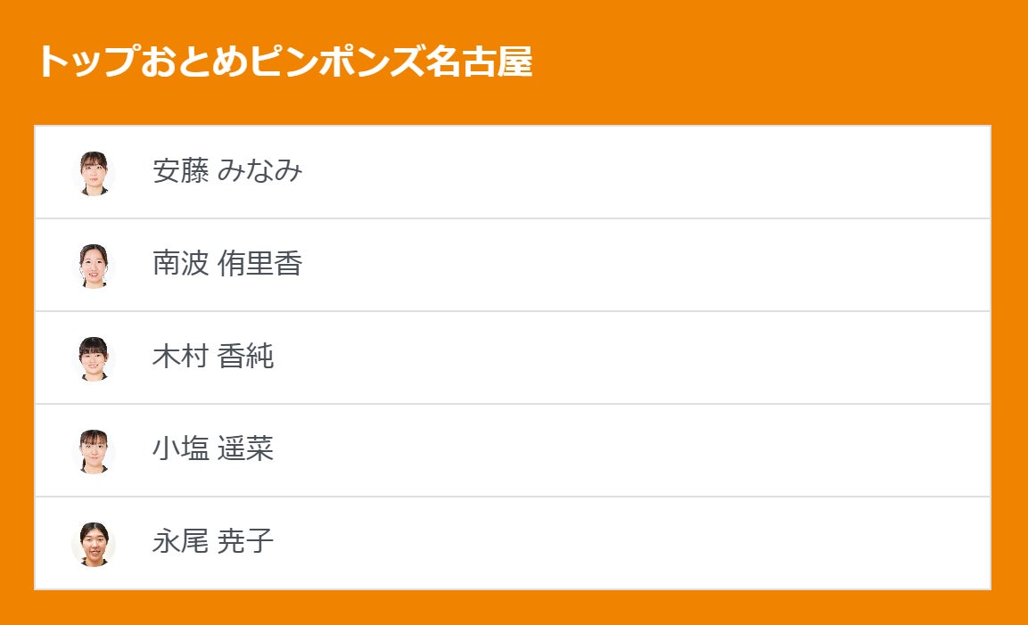 ノジマTリーグ 2024-2025シーズン 公式戦 2月16日開催の「京都カグヤライズvsトップおとめピンポンズ名古屋」のベンチ入り選手を発表いたします。