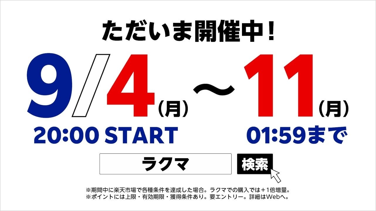 ‐ エントリーのうえ「楽天スーパーSALE」期間中に「楽天ラクマ」で1,000円以上お買い物すると、「楽天市場」「楽天ラクマ」での「楽天ポイント」が+1倍に! ‐