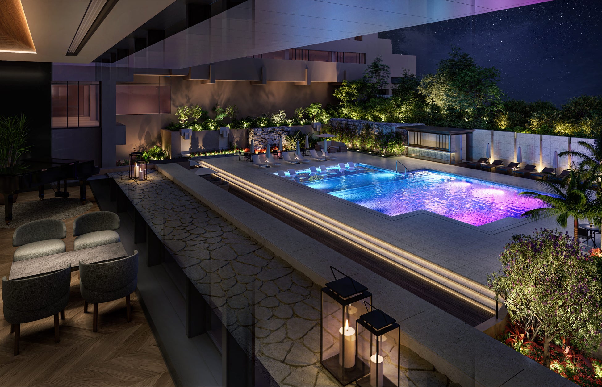ガーデンプールは、昼夜・季節を問わずお楽しみいただける温水仕様へとグレードアップ。特にナイトプールが醸し出す夜のひとときは、当ホテルの新たな象徴となります。幻想的なライトアップが水面を彩り、那覇の夜をきらびやかに演出。都心の喧騒を忘れる艶やかな雰囲気を体験いただけます。