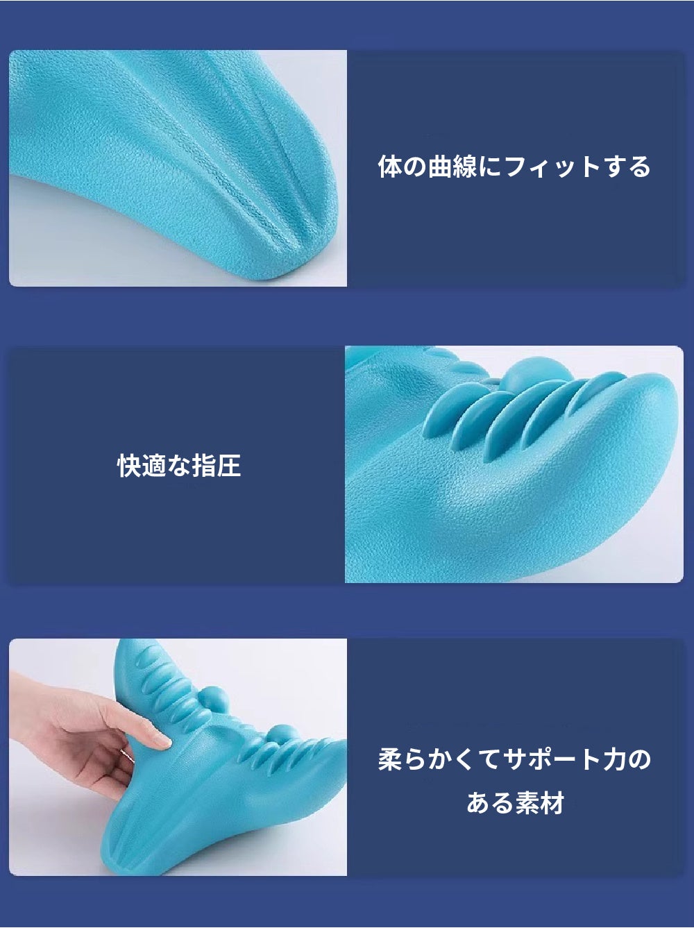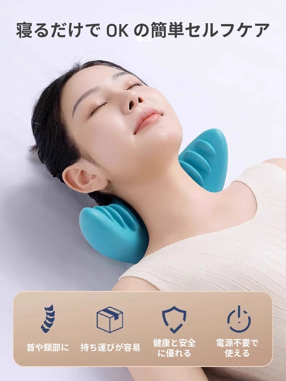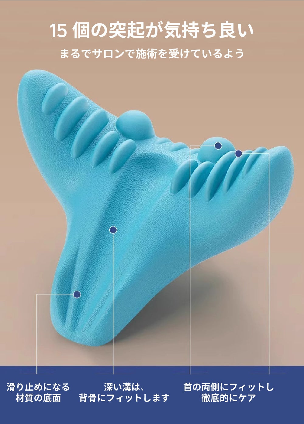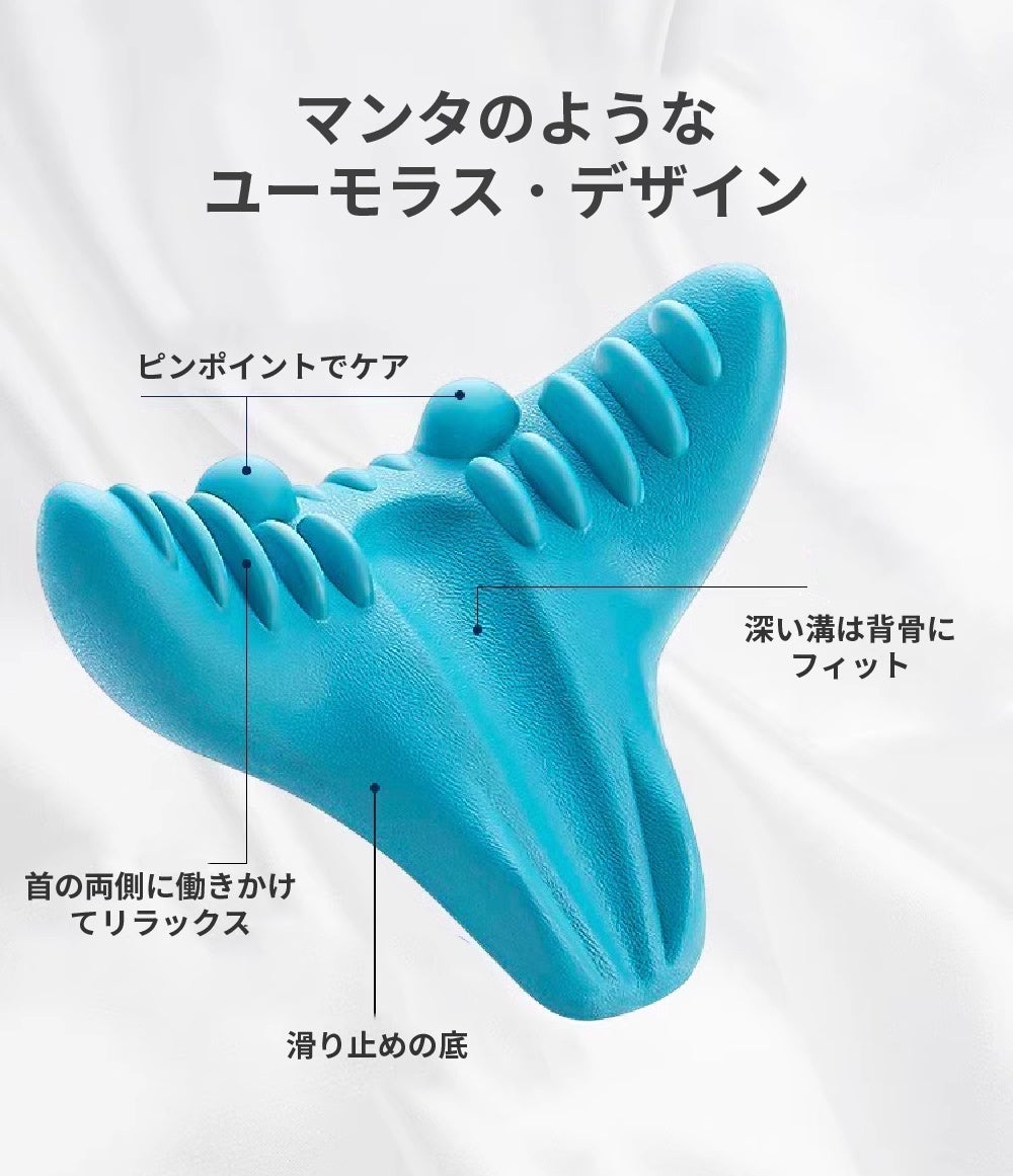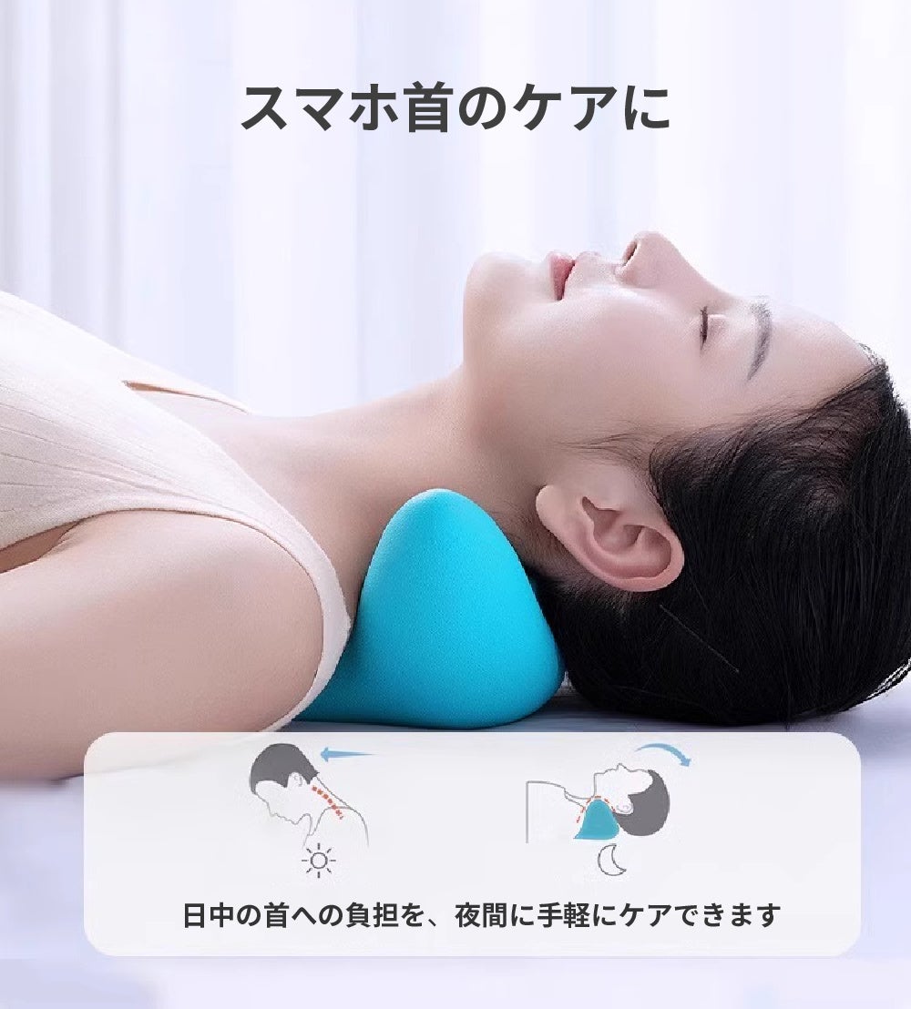 寝っ転がるだけで突起が首筋をやさしく刺激し、一日の疲れをケアします。