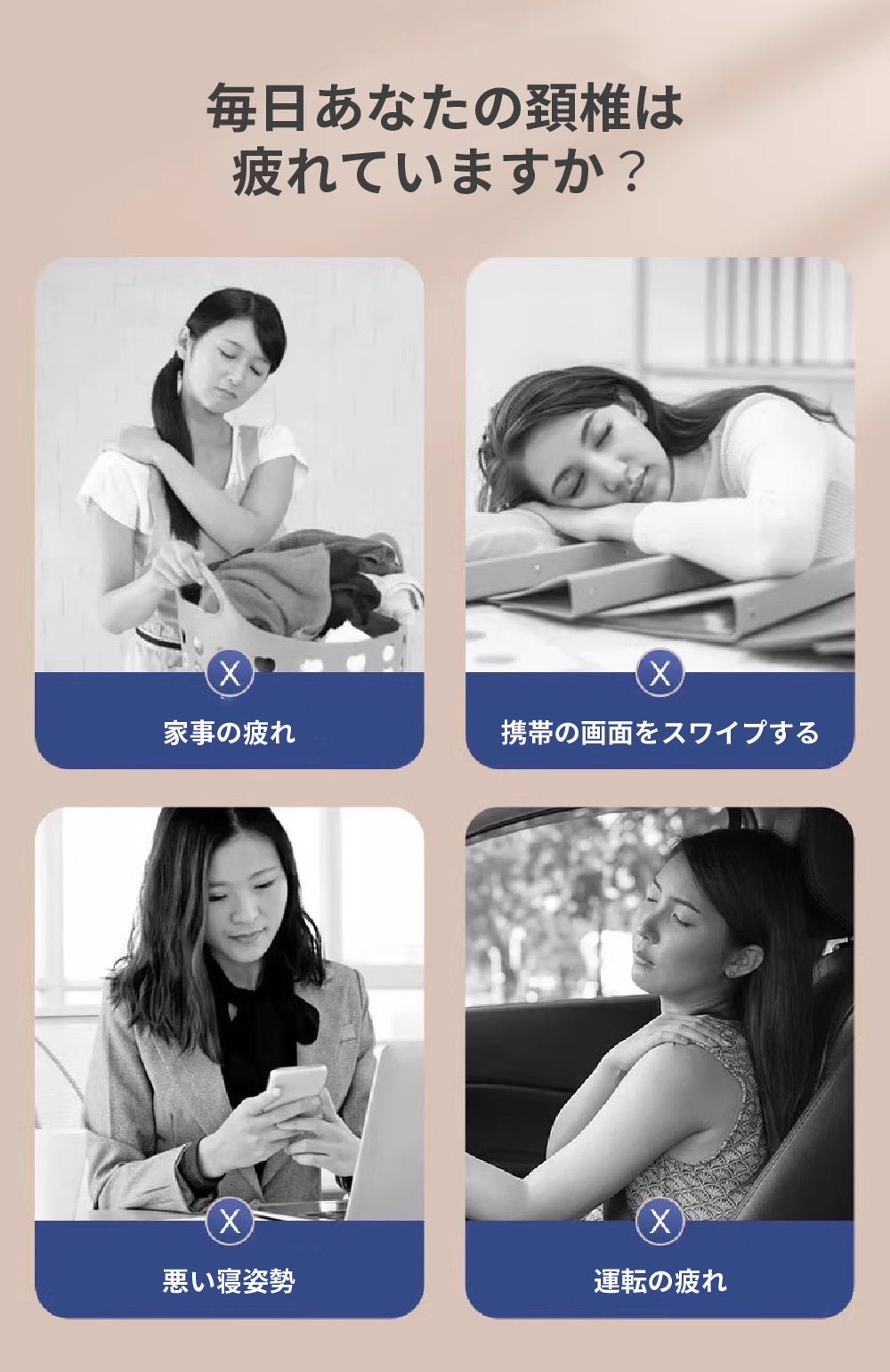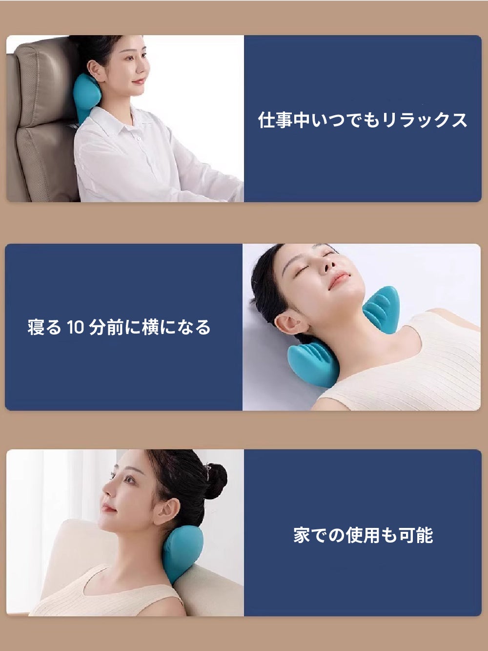 日中の緊張や長時間労働による首への負担を、夜間に手軽にケアできます。