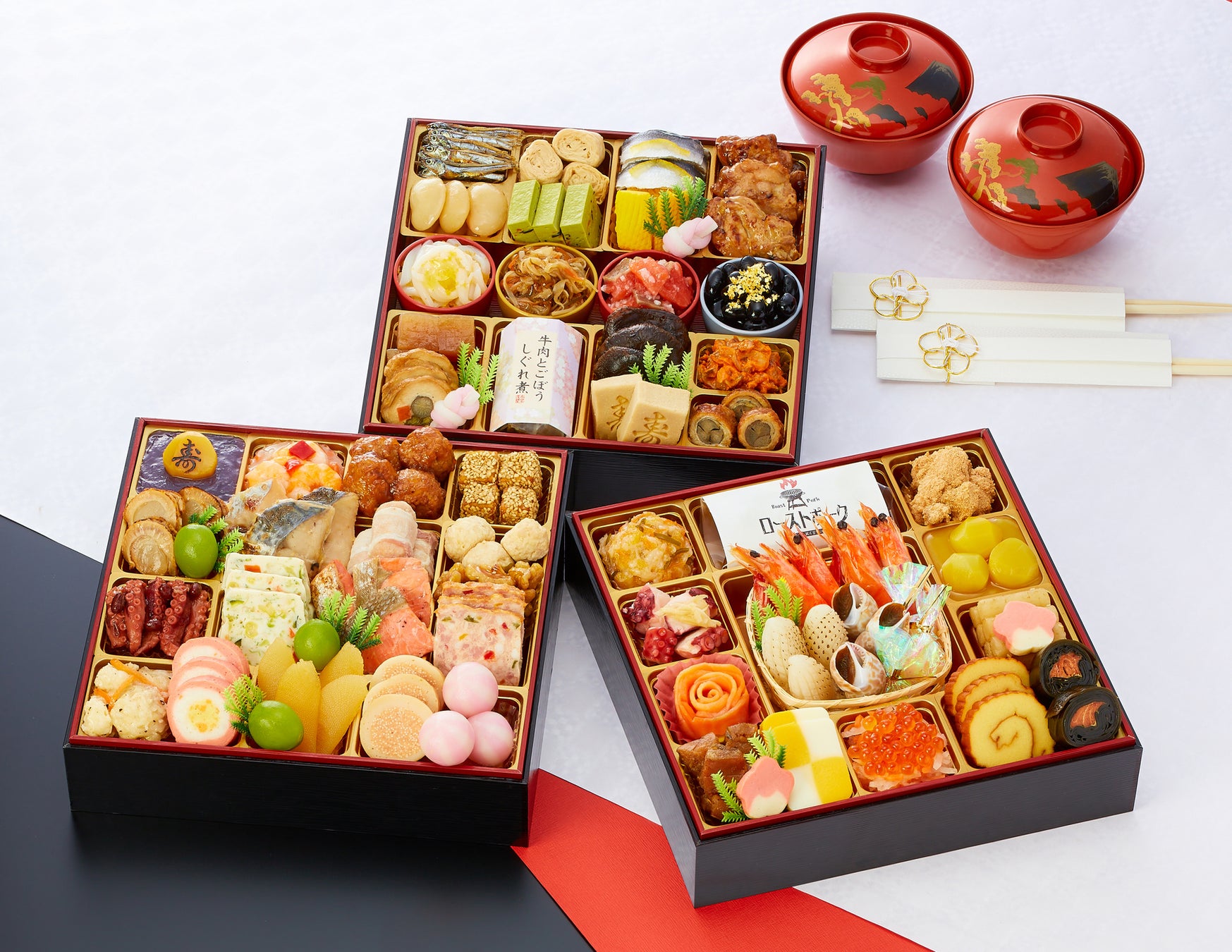 概要: 「定番おせち」や「和洋折衷おせち」に加え、贅沢気分を味わいたい方に向けた「高級おせち」や、好きなおせちを好きなだけ選びたい、手作りおせちに1品追加したいという方へ向けた「単品おせち」もご用意しています。また人数別や予算別だけでなく、おせちのテイストや「冷凍」・「冷蔵」・「常温」など、より詳細な条件で商品の絞り込みが可能な検索機能を採用しています。