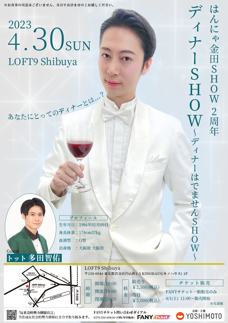 はんにゃ金田SHOW 2周年 ディナーショー ~ディナーはでませんSHOW~ 【開催のご案内】