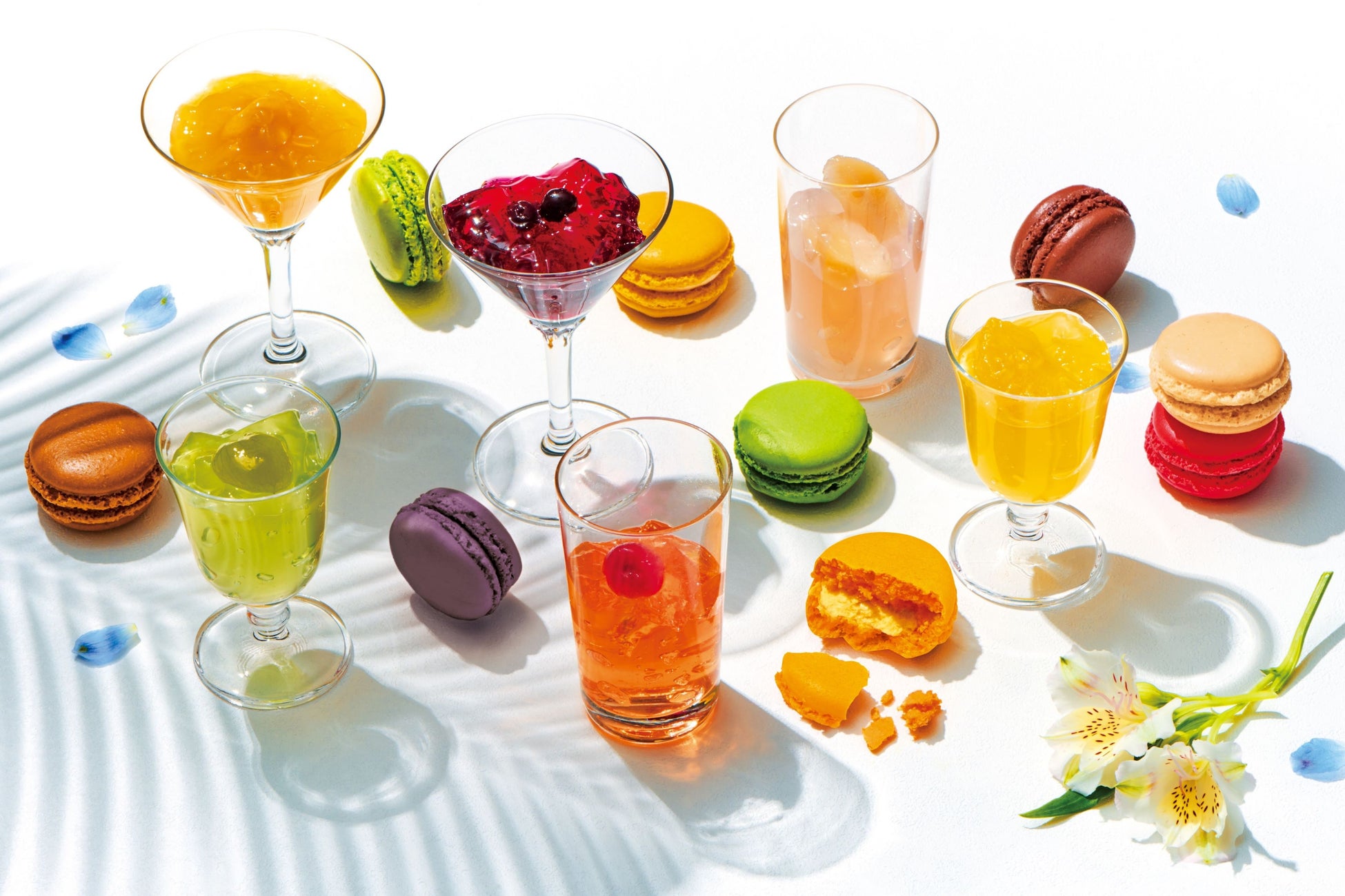 爽やかな味わいのジュレ6種とカラフルなマカロンの詰め合わせ。果肉が入ったみずみずしいジュレと、ダロワイヨのスペシャリテであるマカロンを詰め合わせました。