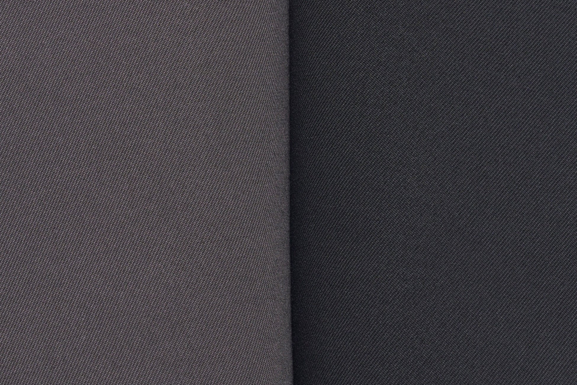 黒とグレーの2色展開。ポリエステル 100%の素材で、しっかりとしたハリやコシはありつつ、春夏用にやや薄手の生地に変更した。ドライタッチで形がしっかり出て、以前よりわずかに光沢が抑えられている。
