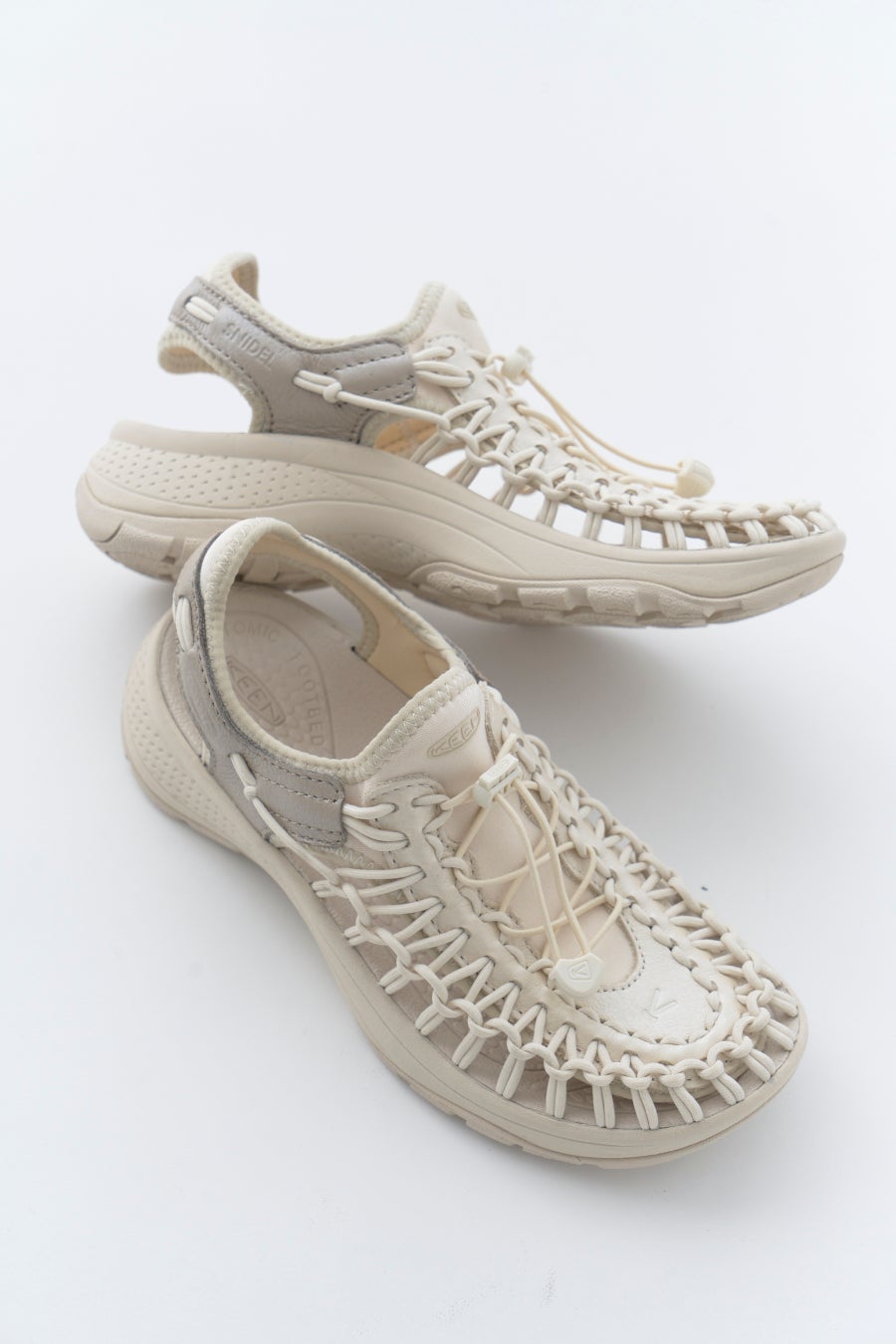 『KEEN』のNEWモデルサンダルからSNIDELらしいアイボリーのカラーが登場!光沢感のある素材とコードディテールが目を引く一足