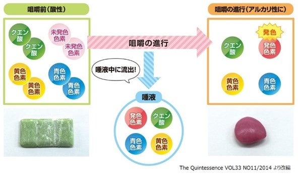 【キシリトール咀嚼チェックガムの色が変わるメカニズム】