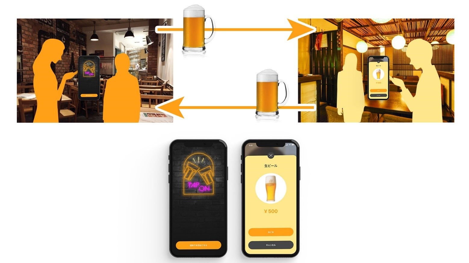 ・「TAP ON」は、離れた飲食店にいるお客様同士をビデオ通話機能を通じてコミュニケーション可能とするWebアプリケーションです。(iOS/Android対応)