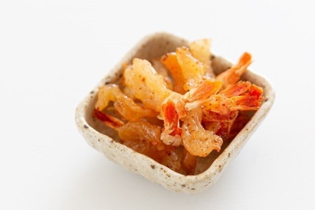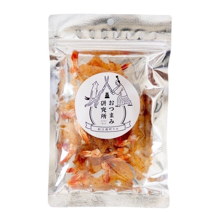 くまえび(キャットタイガー)の殻を取り、ボイル後にピリ辛の味付けをし香ばしく焼き上げた、珍味製品としては珍しい海老のおつまみです。