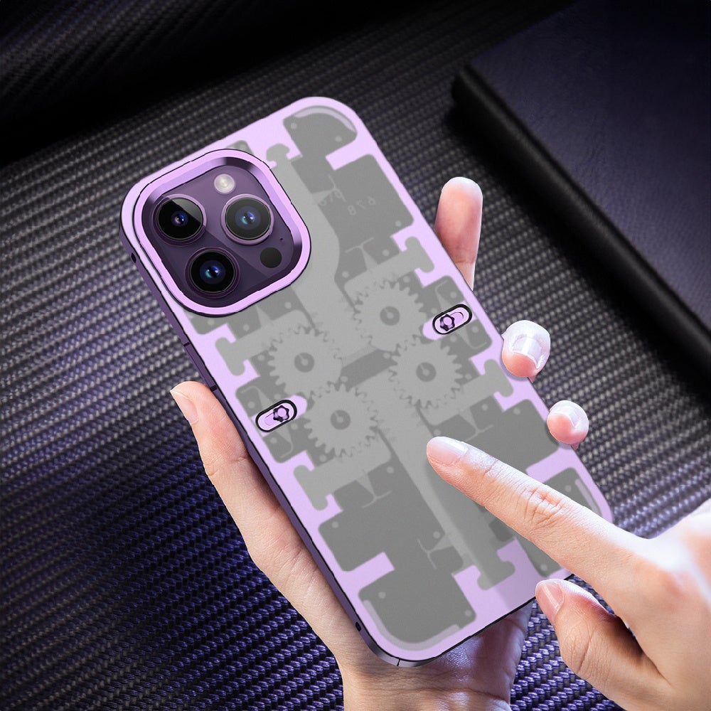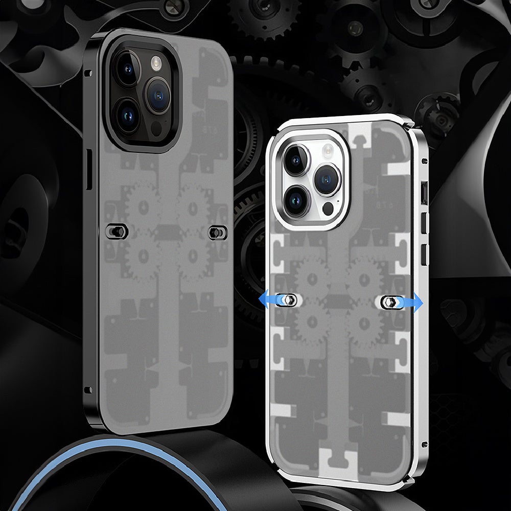 GearShield(ギアシールド)は、ユニークな歯車機構を内蔵し、スマートフォンを簡単に着脱できるスタイリッシュなケース。