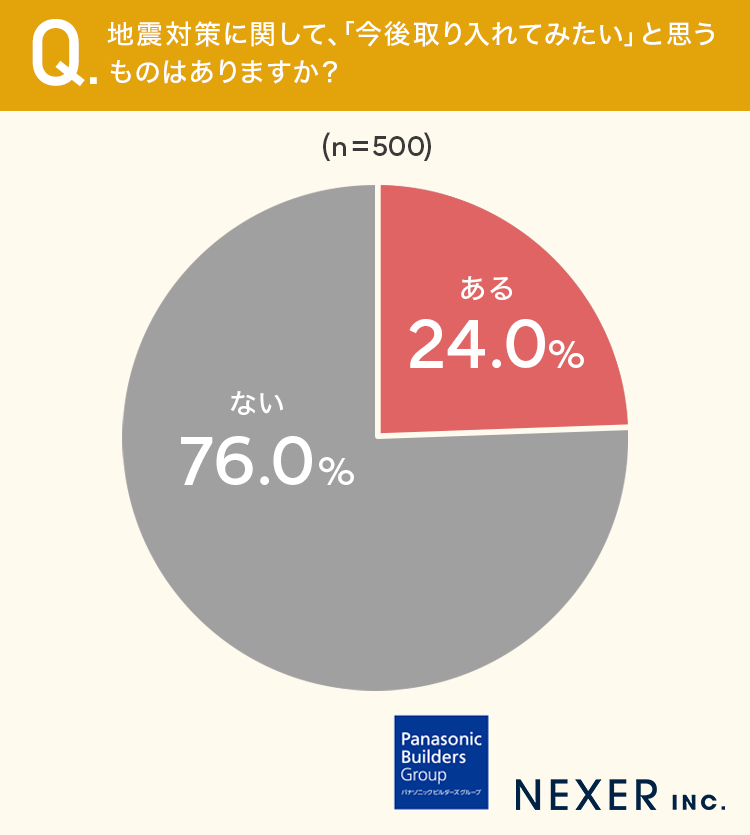 地震対策に関して「今後取り入れてみたい」と回答した方は24%でした。