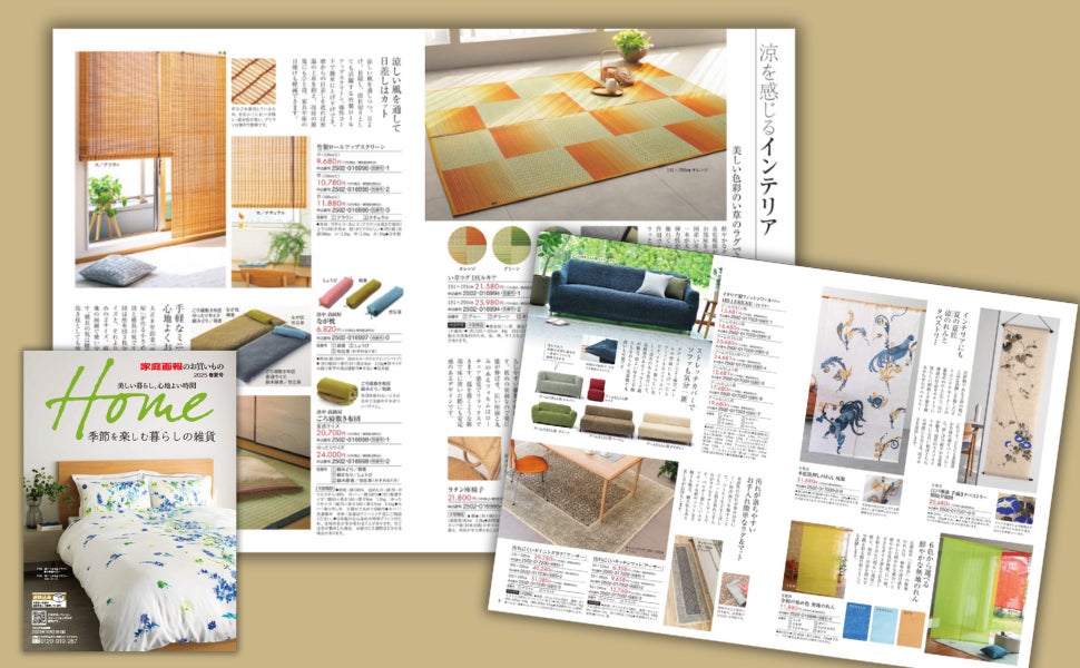 “美しい暮らし、心地よい時間”をつくるためのいいものを取り揃えたインテリアカタログ『Home』。この季節にふさわしいファブリックやインテリア雑貨のほか、防災グッズや偲ぶ日の装いなど、皆さまの生活を彩る選りすぐった商品をご紹介しています。