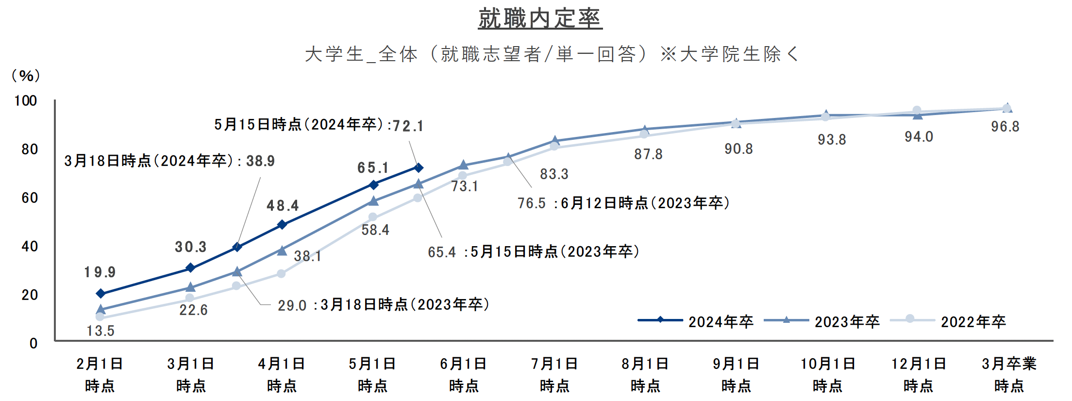 ※1 内々定を含む ※2 ( )内数値は前年同月差