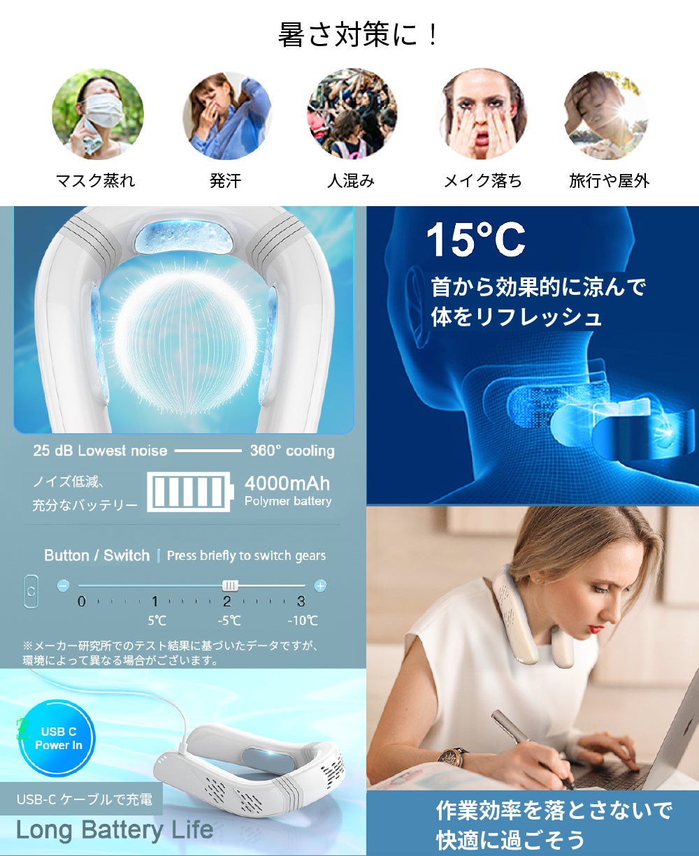 ※ 炎天下など暑い環境で長時間作業や仕事で本製品をご利用になる場合は、合わせて適度な休憩や水分補給も必ずして、熱中症に気をつけてください。