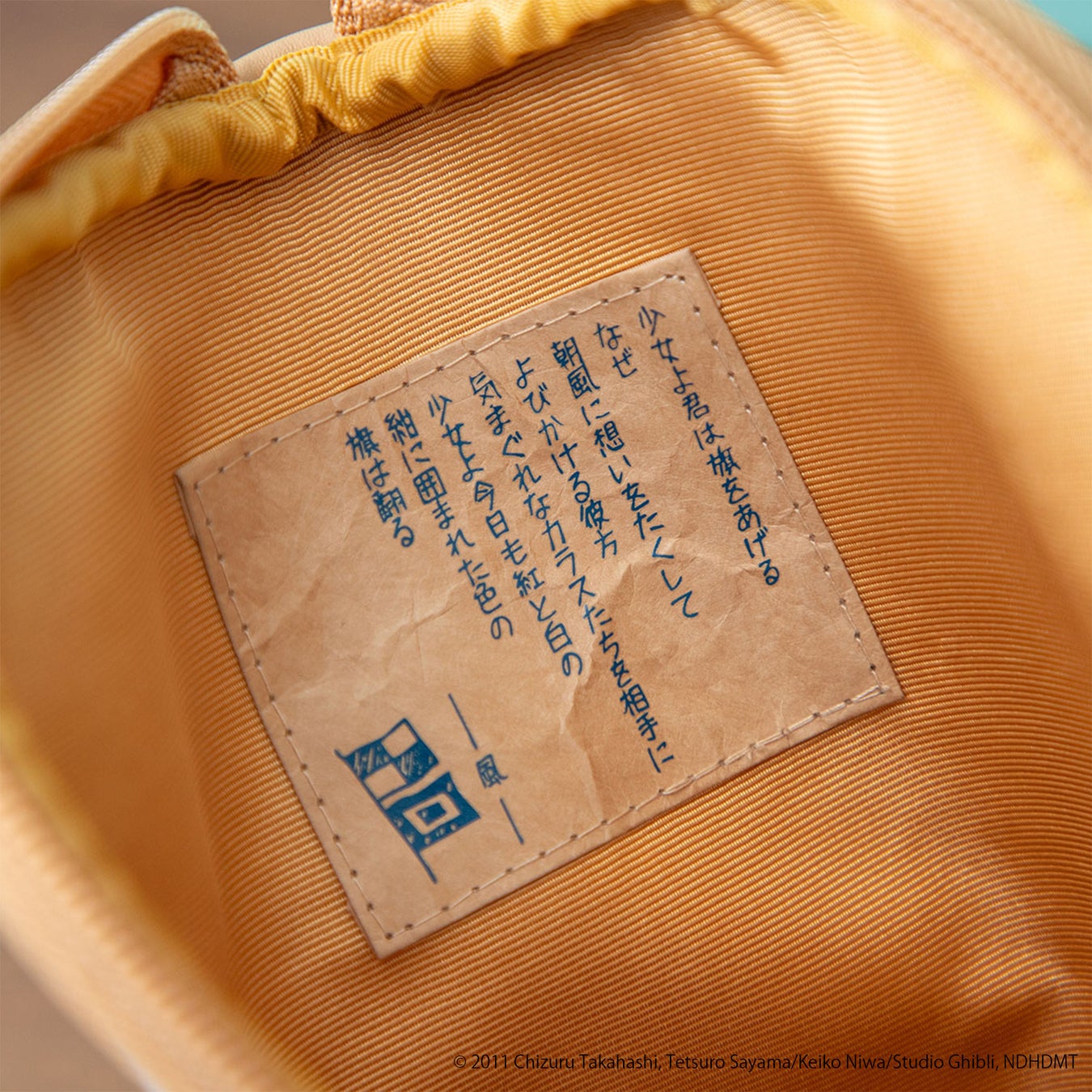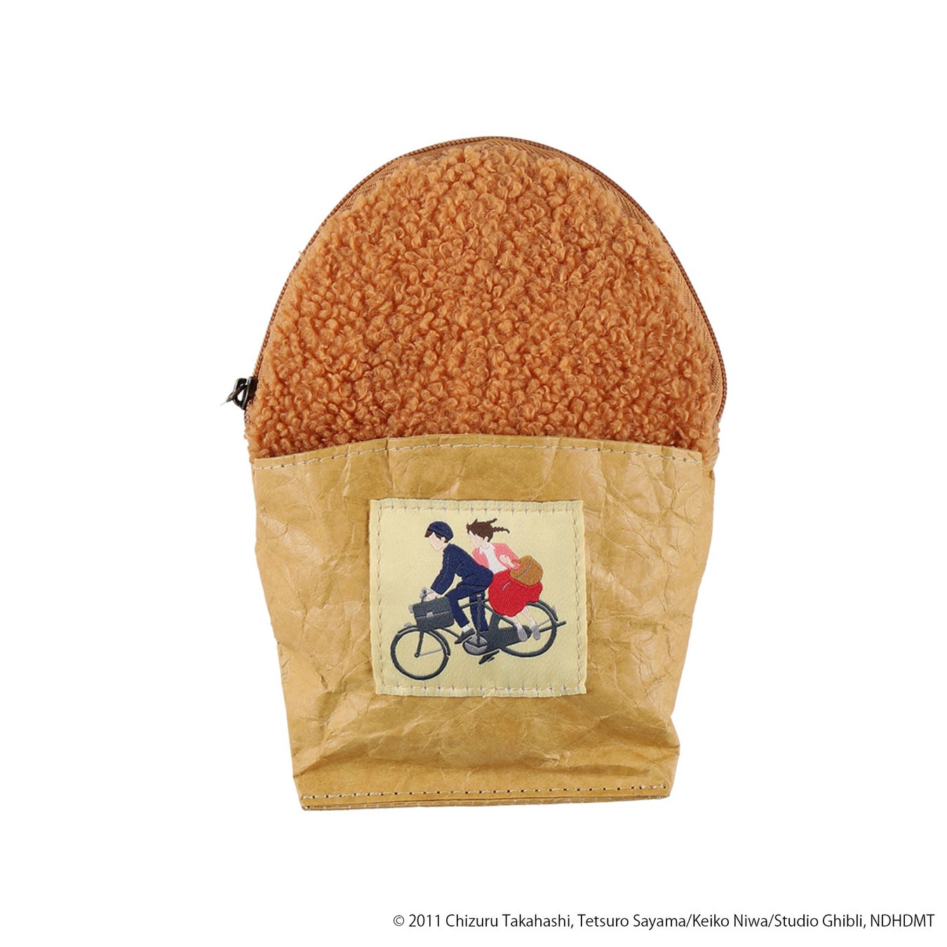 『コクリコ坂から』作中に登場するコロッケをモチーフにしたポーチです。コロッケの衣はパイル生地の起毛を、包み紙の部分は紙素材を使用し、コロッケをリアルに表現しています。織りネームには自転車で坂を下る海と俊のワンシーンやお肉屋さんの店頭に表記されていた値札のデザインを採用するなど、思わず作品を観返したくなるようなこだわりを感じられるアイテムに仕上げました。