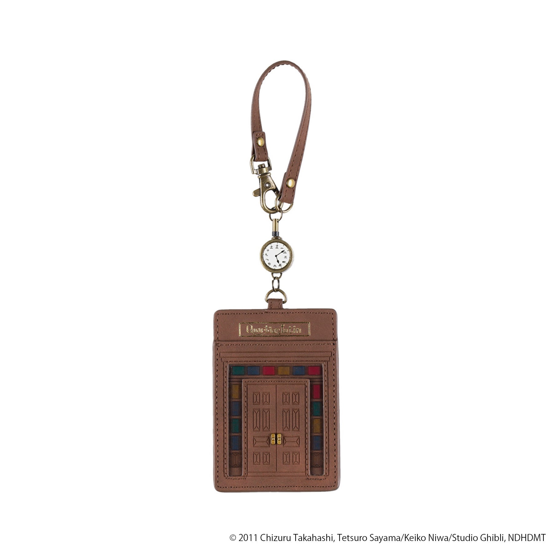 作中に登場する古い洋館「カルチェラタン」をイメージした、リール付きのパスケースです。古びた建物の様子を深いブラウンのカラーで、玄関口のステンドグラス部分をクリア素材で表現しました。リール部分にあしらった時計の針は、海たちがカルチェラタンを訪れた時間帯を指しています。