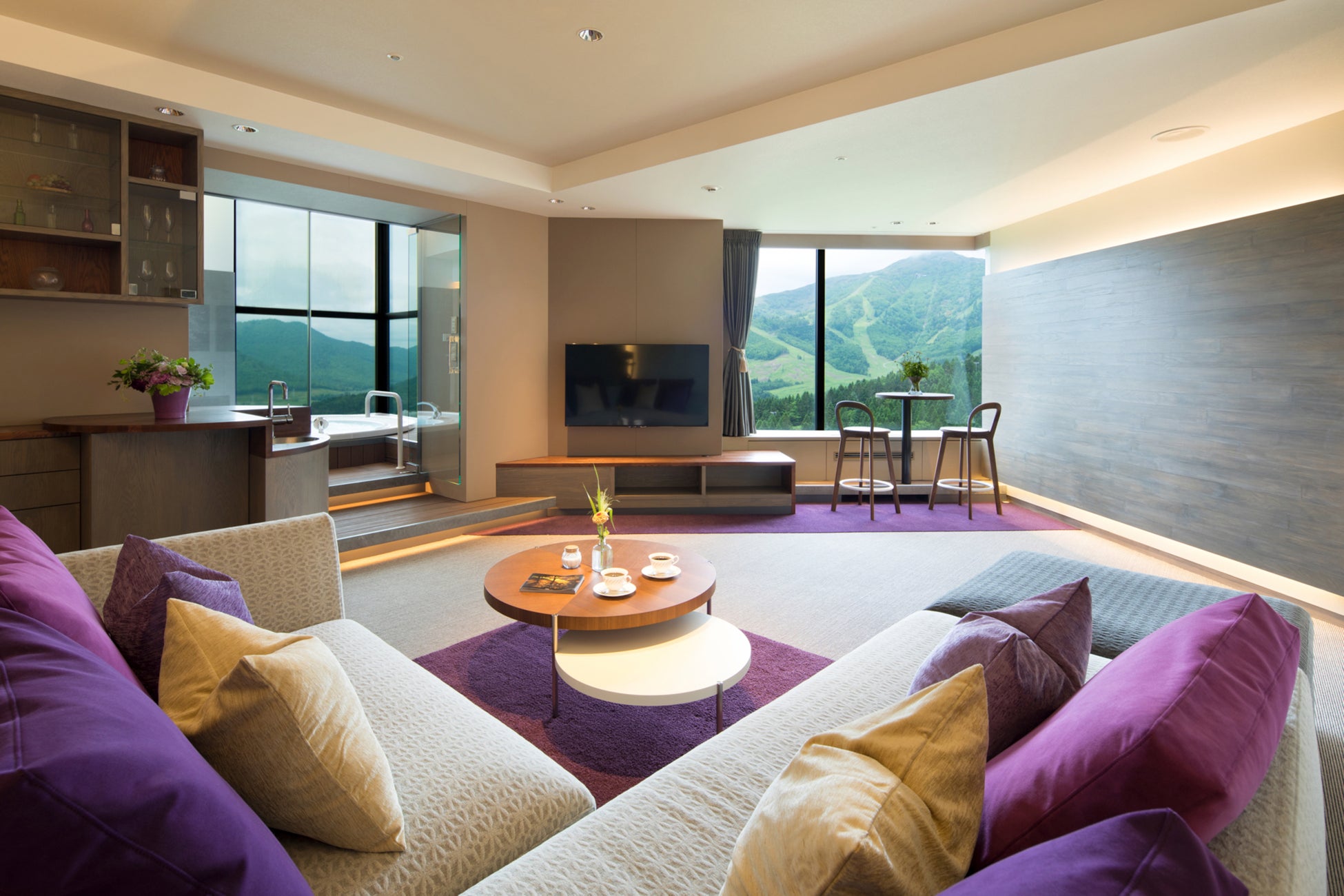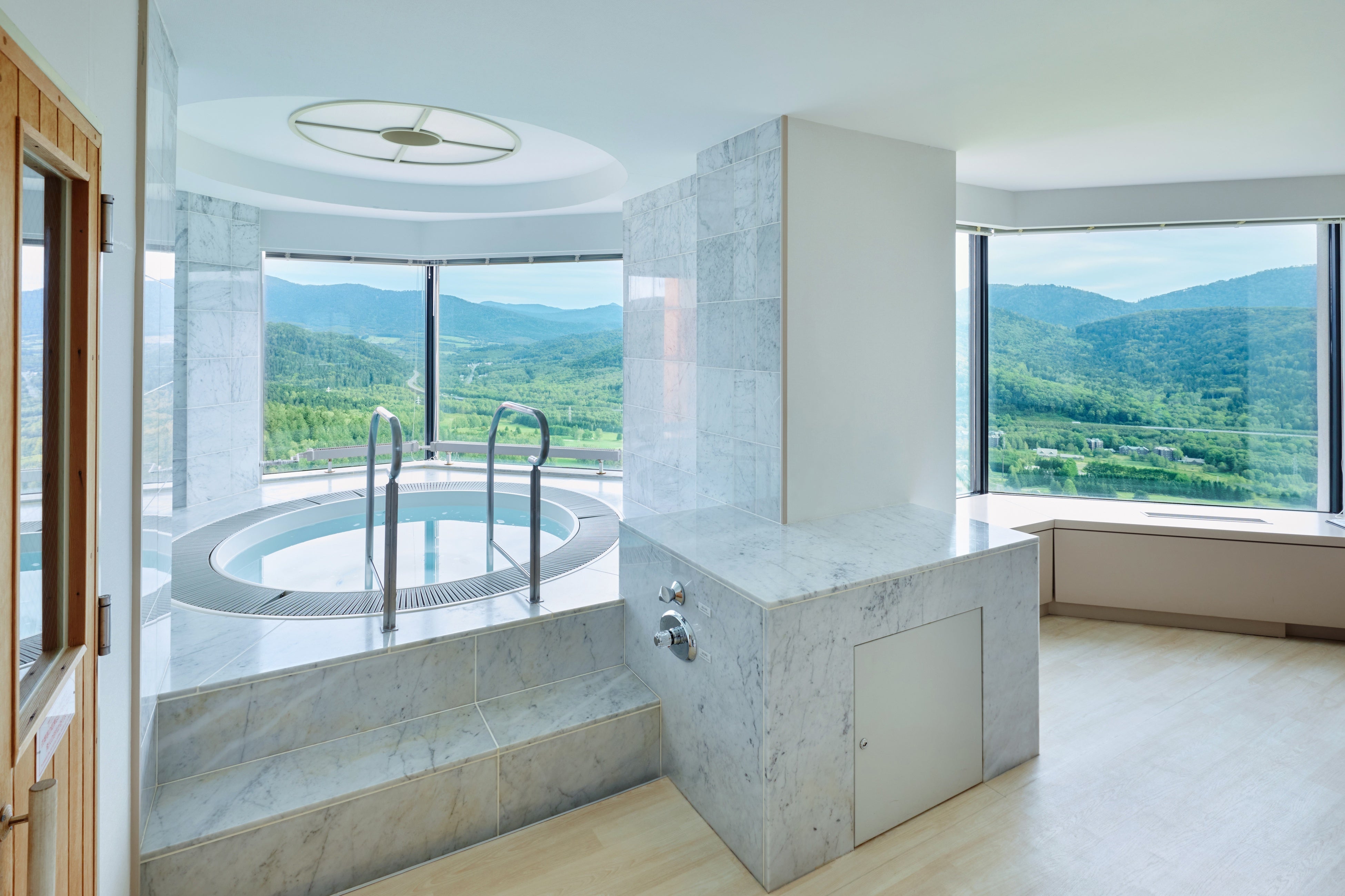 は、全室広さ100㎡を超えるスイートルームには展望ジェットバスとプライベートサウナを完備し、ゆったりと豊かな時間を過ごせます。コンセプトは「北海道の大地を感じるグレイスフルステイ」。緑あ