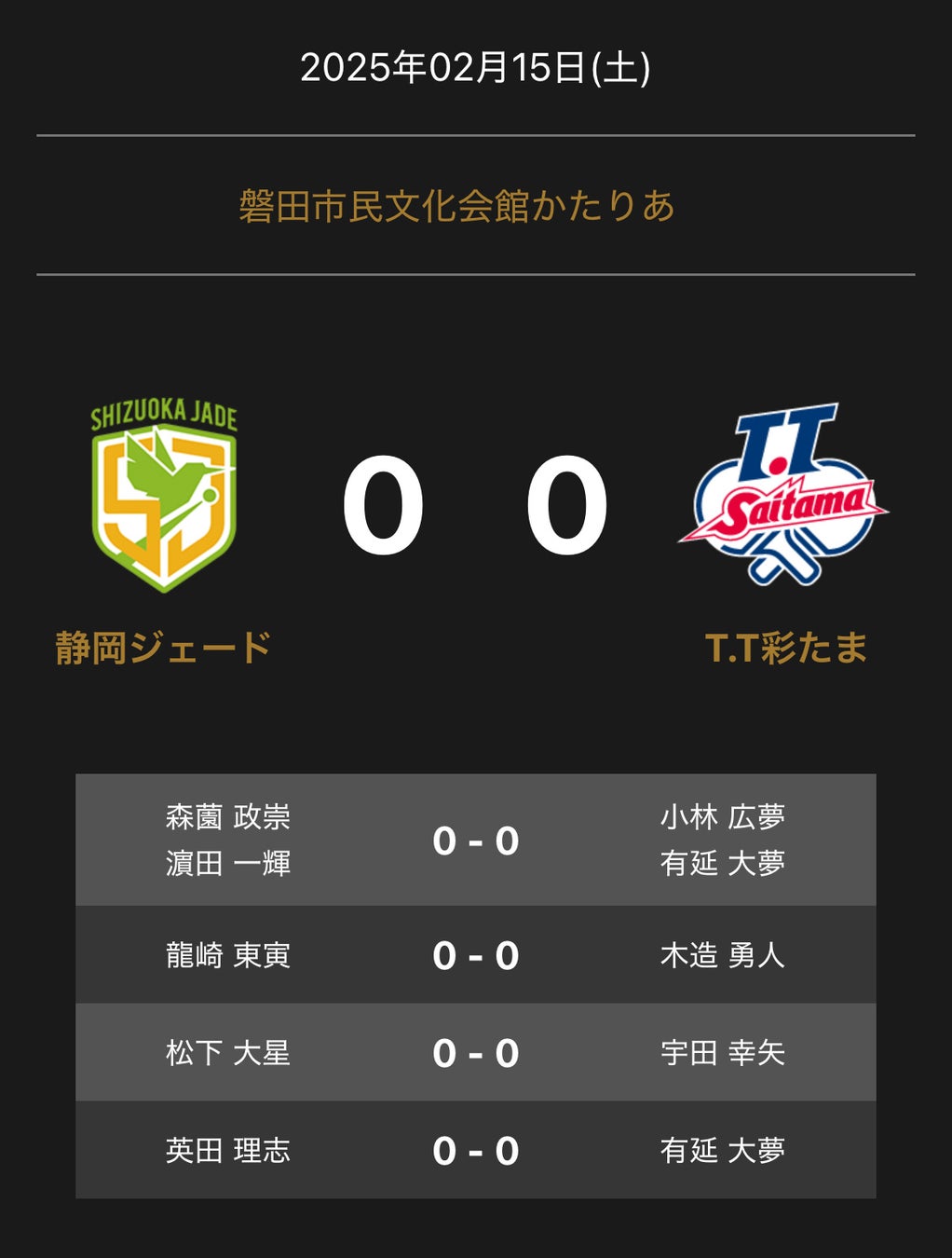 ノジマTリーグ 2024-2025シーズン 公式戦 2月15日開催 静岡ジェード vs T.T彩たま 対戦オーダー発表