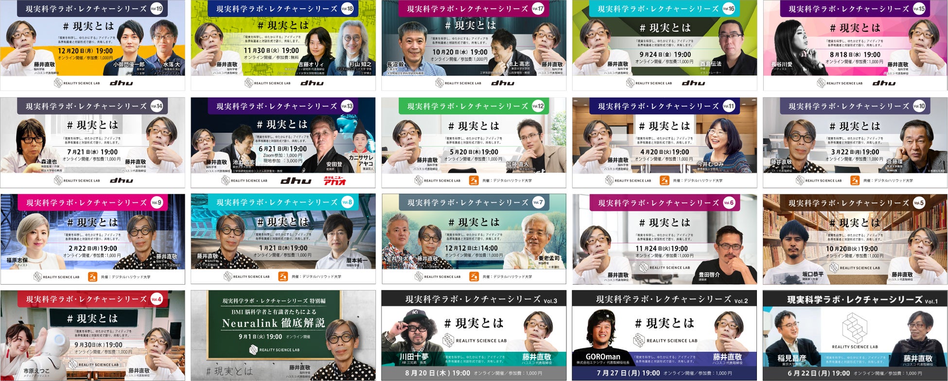 本レクチャーシリーズは、「現実を科学し、ゆたかにする」をテーマに、デジタルハリウッド大学大学院 藤井直敬卓越教授がホストになって各界有識者をお招きし、お話を伺うレクチャー+ディスカッションのトークイベントです。これまでの累計聴講者数は約2,000人に上り、20回目となる今回より、デジタルハリウッド大学の公開講座として開催いたします。