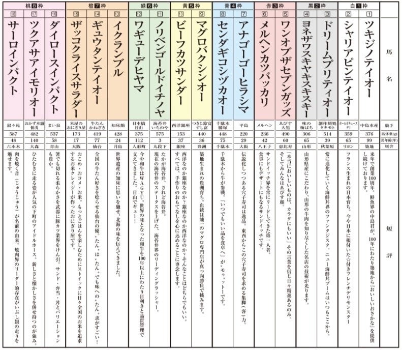 騎手→販売売場、馬体重→お弁当の総重量(およその重さ)、馬年齢→創業年から本年までの期間、厩舎→本社所在地とした競馬新聞風のチラシも発行し盛り上げます。