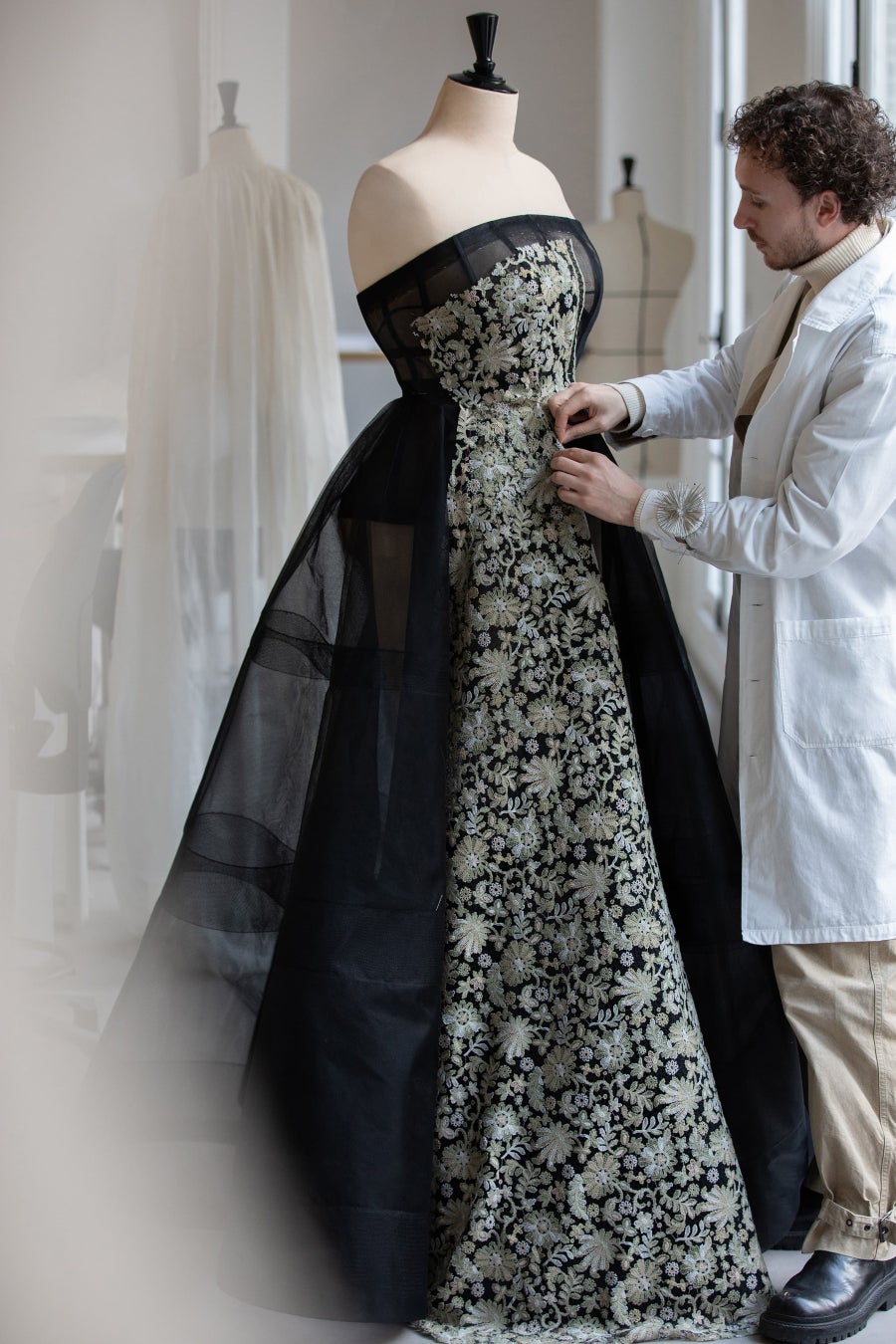 2024年12月7日、ノートルダム大聖堂の再建式典で行われたコンサートにマリア・グラツィア・キウリによるオートクチュールドレスを纏い、プリティ・イェンデが登場しました。ブラックのチュールとグリーンのギピュールレースが組み合わされたドレスはボートネックで背中が大きく開いたデザインで、約850時間をかけて完成に導かれています。ディオール アトリエのエクセレンスを体現したサヴォワールフェールの詳細をソフィ―・カレによる撮り下ろし写真からご覧ください。