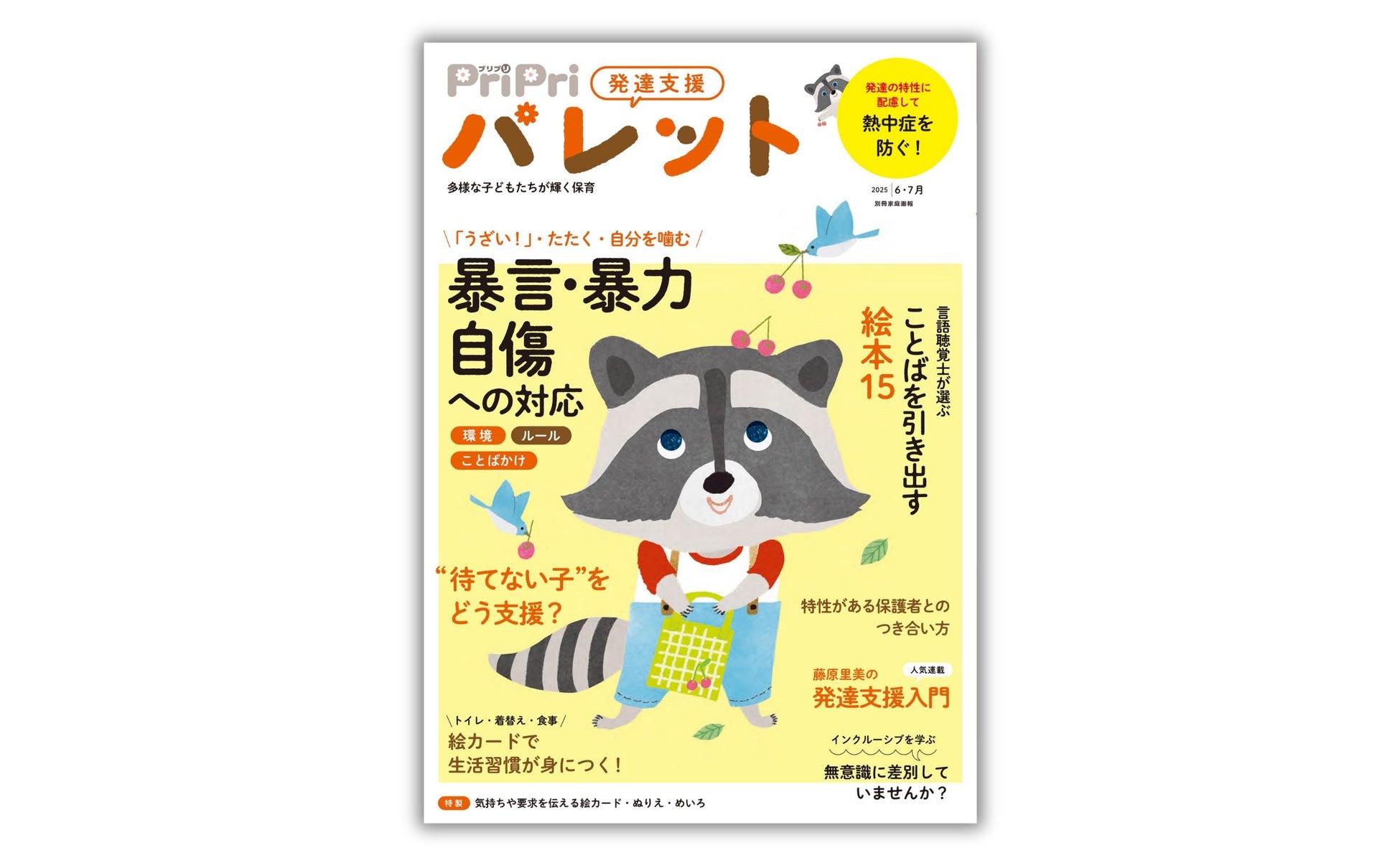 4月28日(月)発売の『PriPriパレット 6・7月号』では、保育者が悩むことの多い「暴言・暴力」「自傷行為」への対応について具体的に取り上げます。また、暑くなるこれからの時期に心配な熱中症。発達に特性のある子へ水分補給を促すポイントや園での実践アイデアをご紹介!