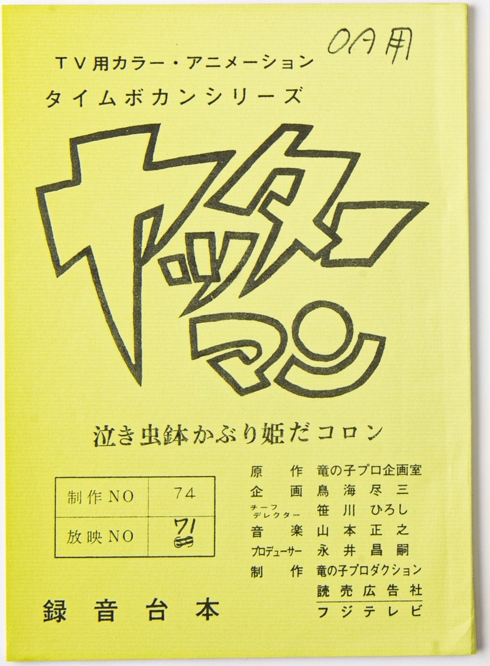 1.「ヤッターマン」録音台本(B5判、全70ページ)