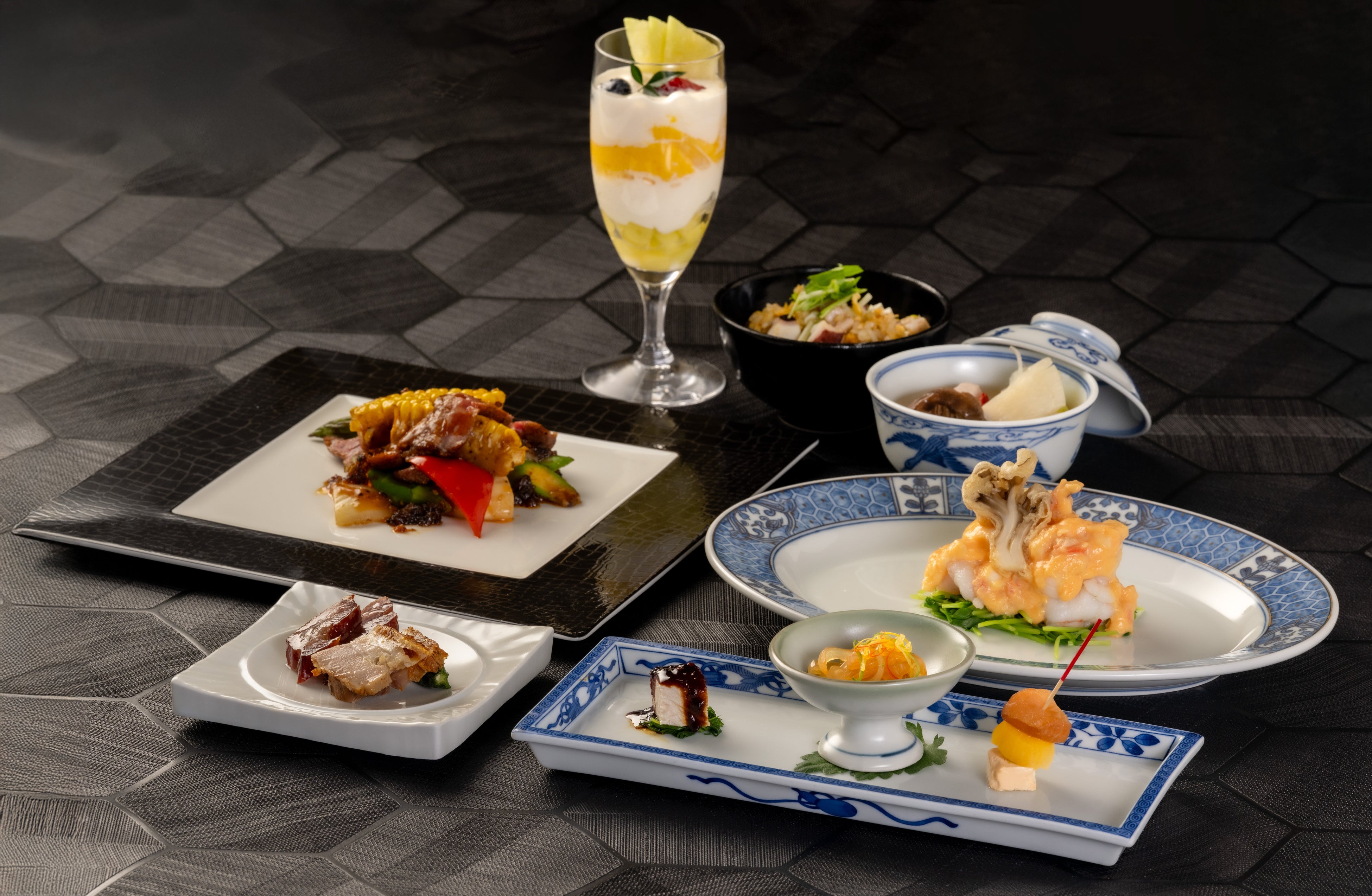 鉄板焼「さざんか」、中国料理「桃花林」では、メインにブランド牛「常陸牛」やブランド豚「常陸の輝きポーク」を使用したコース仕立てのメニューをご用意しており、コースの締めくくりには茨城県産メロンを使ったパティシエ特製デザートも味わっていただけます。