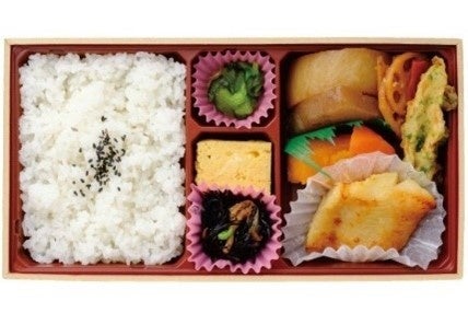 〈まつおか〉で人気の「カラスカレイ味噌漬焼」を使用したお弁当です。骨の無いやわらかなカラスカレイをお楽しみいただけます。