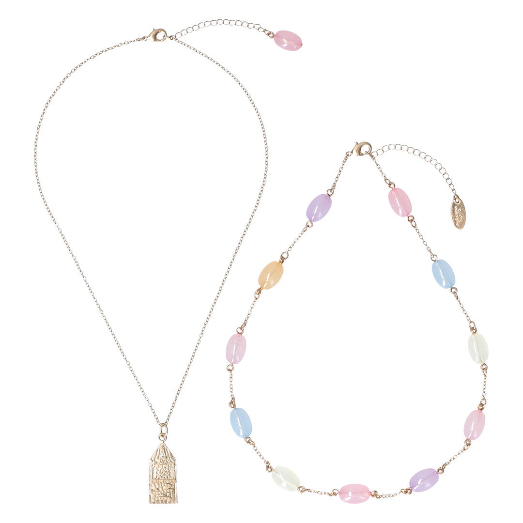 バーティー・ボッツの百味ビーンズのパッケージデザインを落とし込んだプレートネックレスと、色とりどりのビーンズを再現したポップなネックレスのセットアイテムです。コーディネートに合わせて選んだり、重ね付けしたり、アジャスターで長さを変更したりと気分やシーンに合わせて多様な楽しみ方ができます。友人やパートナーとおそろいで付けるのもおすすめのアイテムです。