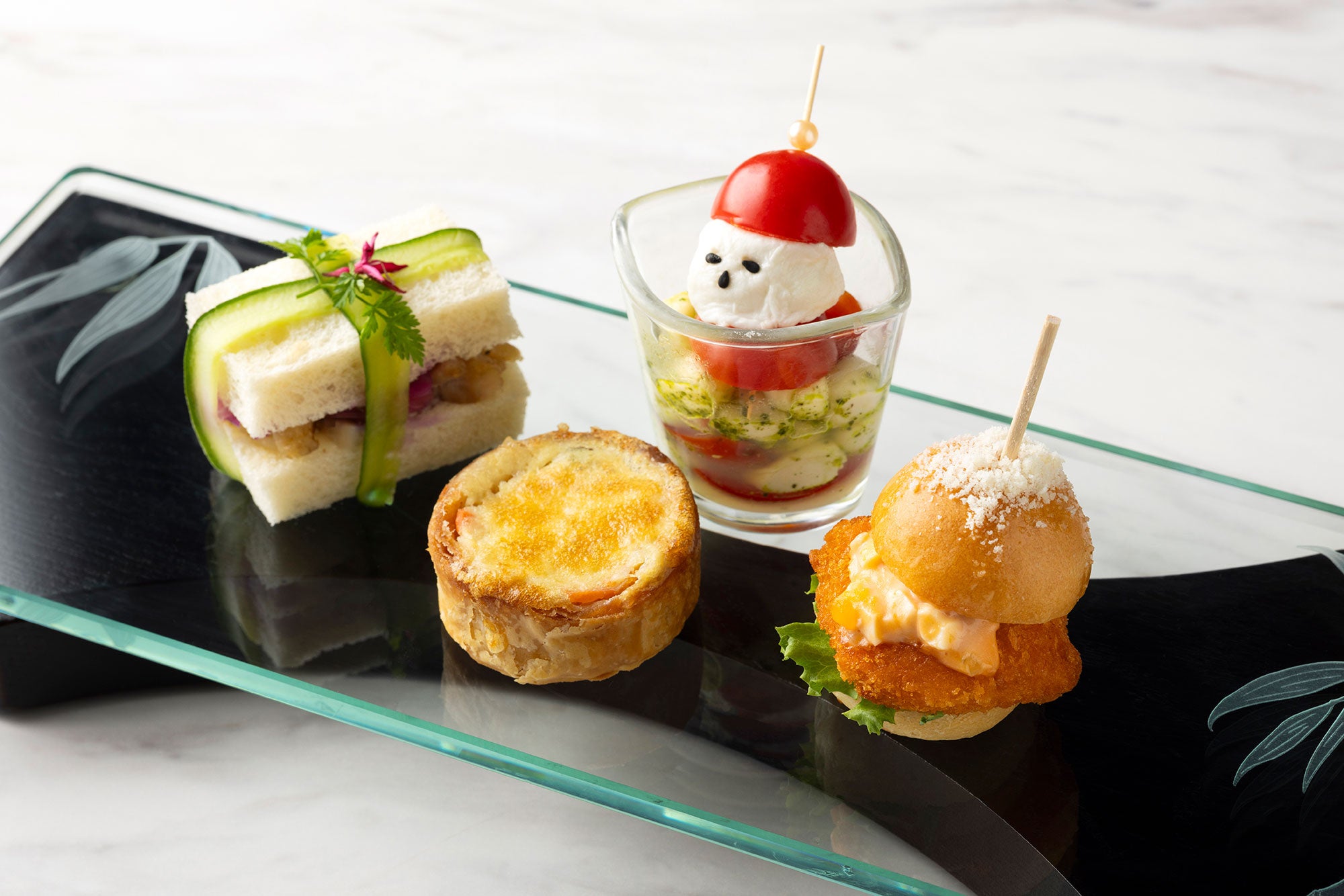 午後のひとときが雪降るクリスマスに。洋梨とレモンのヴェリーヌから海老カツバーガーまで、雪化粧をまとったスイーツとセイボリーがクリスマス気分を盛り立てます。シュトーレンのお土産付きプランもございます。
