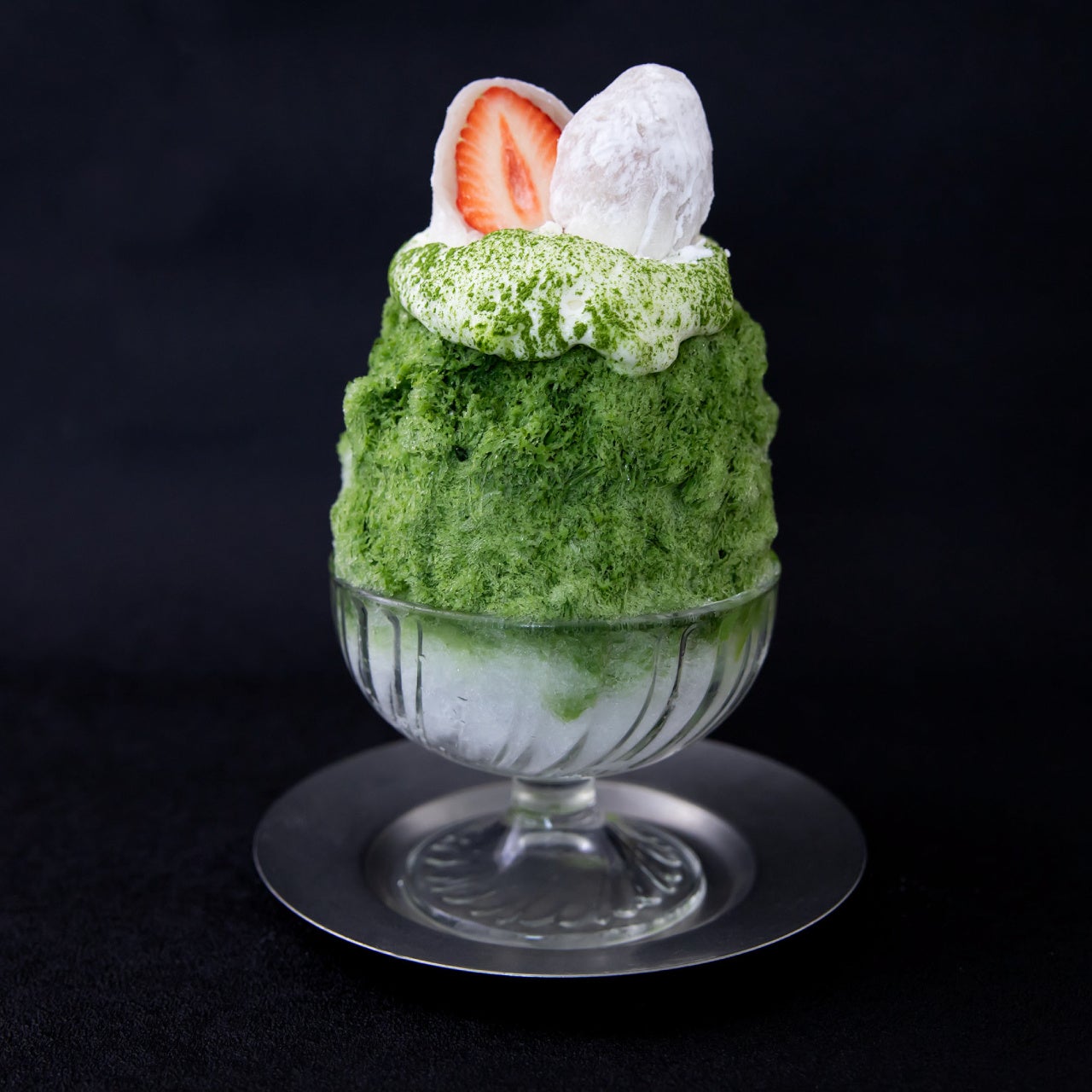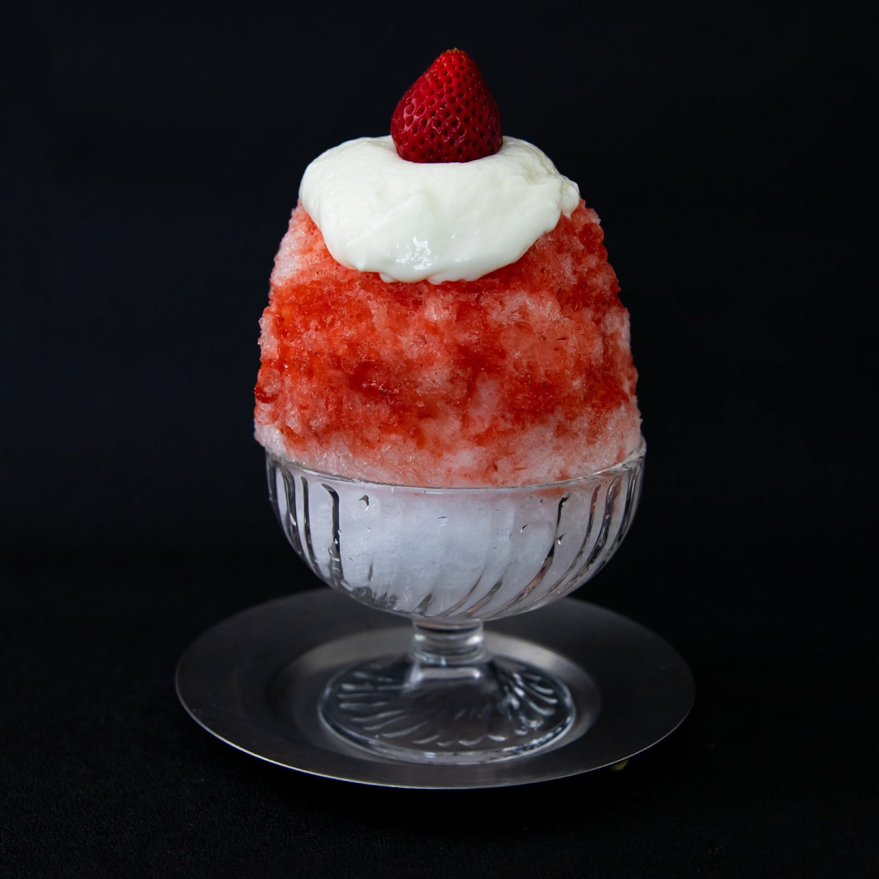 信州の中央アルプス系深層天然⽔を原水とし、48時間以上かけて不純物を取り除きながら、ゆっくり凍らせた⾼純度の氷「純氷」を使用したフワフワ食感のかき氷。