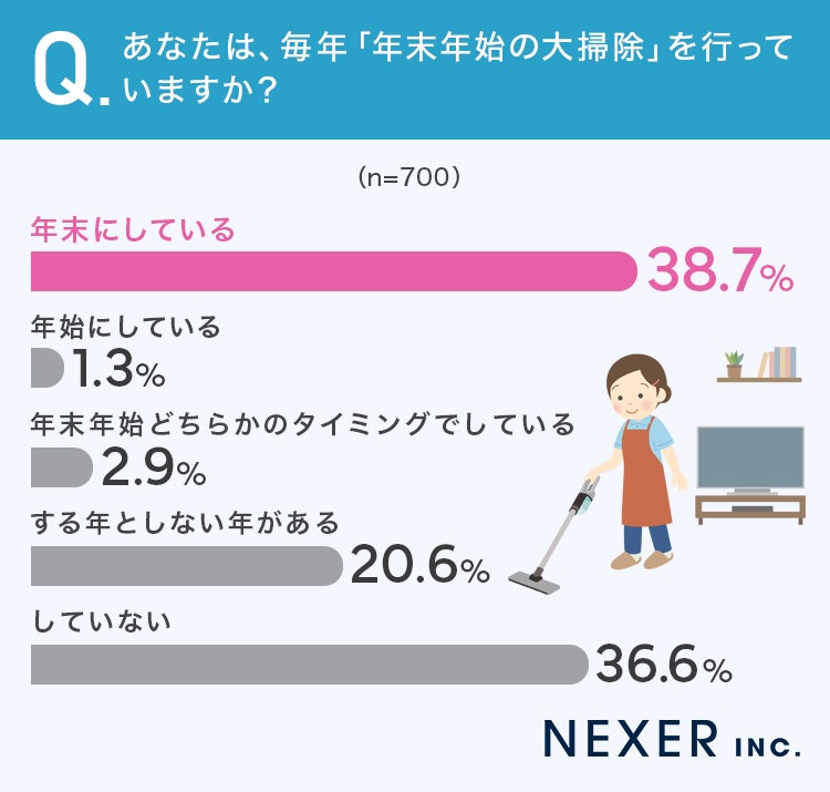 ということで今回はエコゼストと共同で、全国の男女700名を対象に、「年末の大掃除」についてのアンケートを行いました。