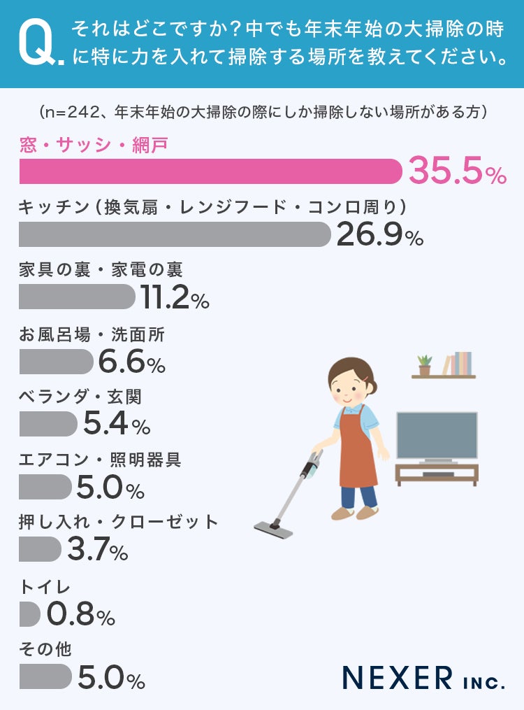 質問4:それはどこですか?中でも年末年始の大掃除の時に特に力を入れて掃除する場所を教えてください。