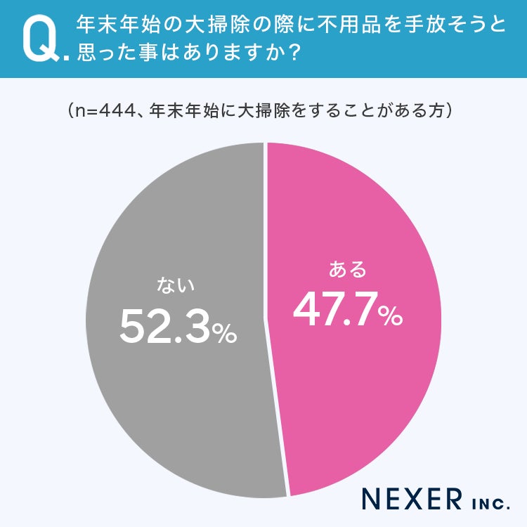 ■47.7%が、年末年始の大掃除の際に不用品を手放そうと思った事が「ある」
