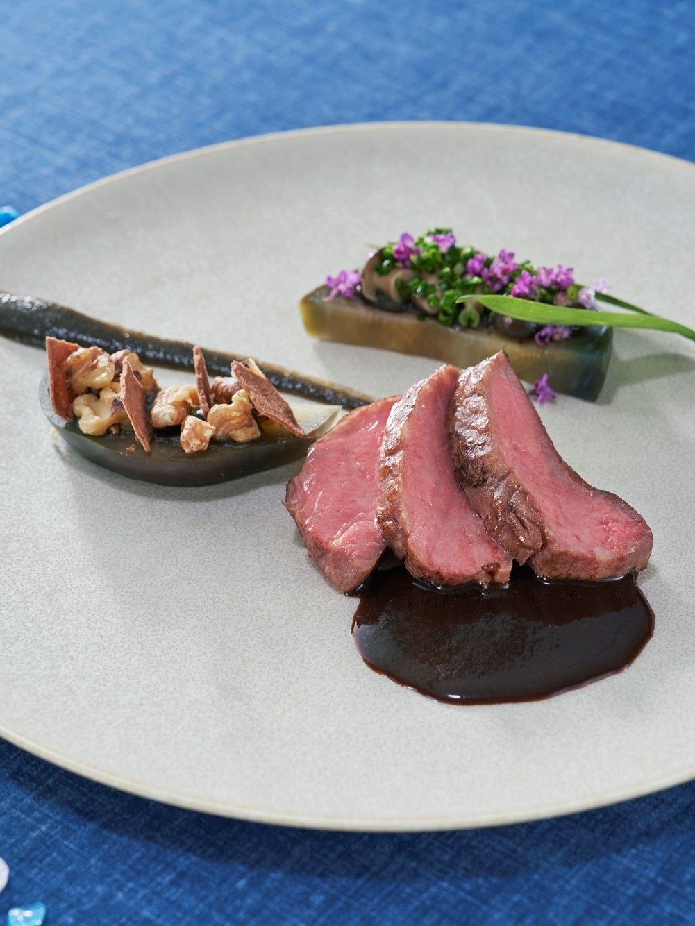 ■亀岡牛のローストに笹の香りを纏わせて 京賀茂なすを2種類の表現で
